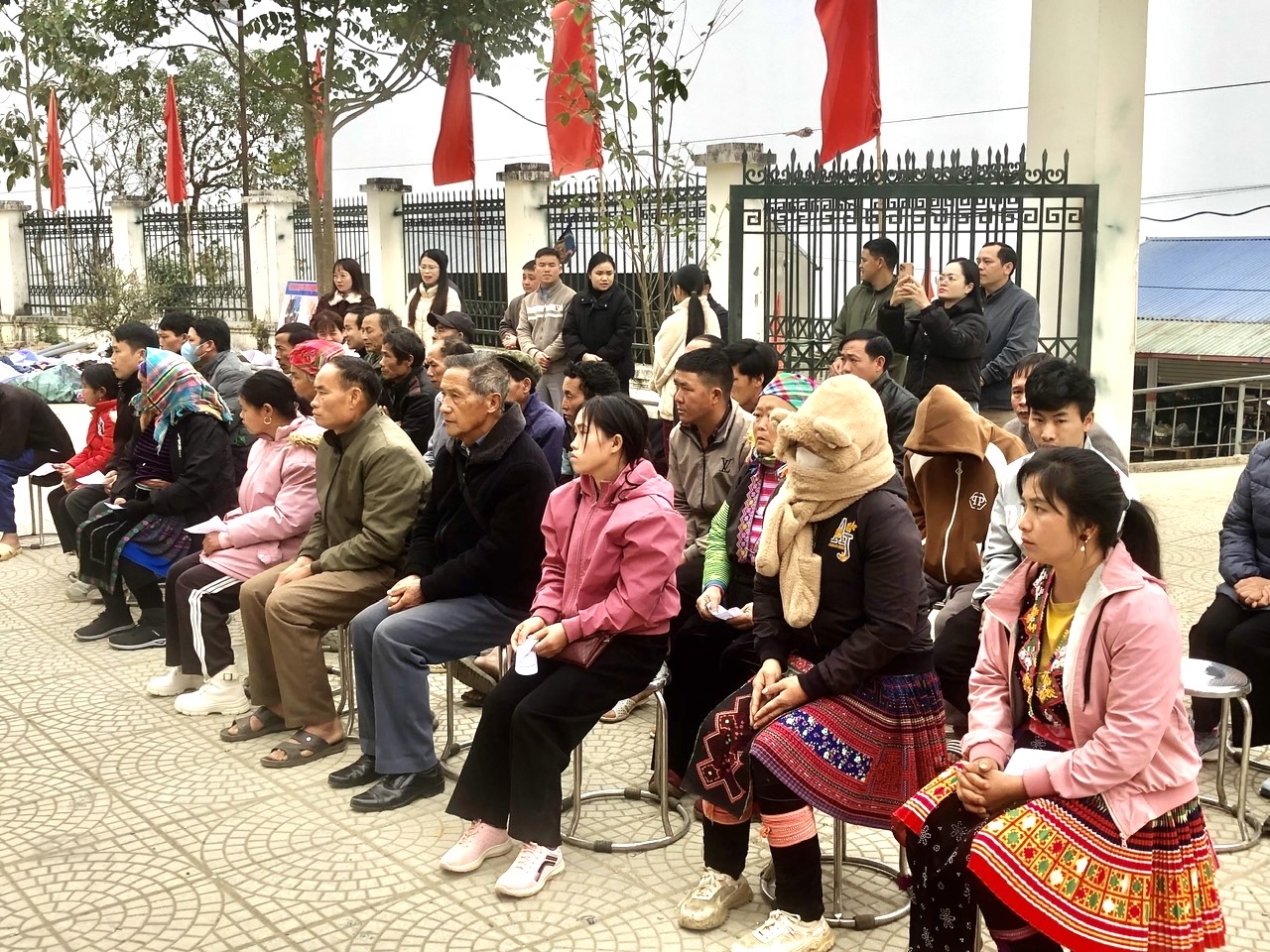 Các hộ nghèo, cận nghèo, gia đình chính sách tham dự chương trình trao tặng quà tết.