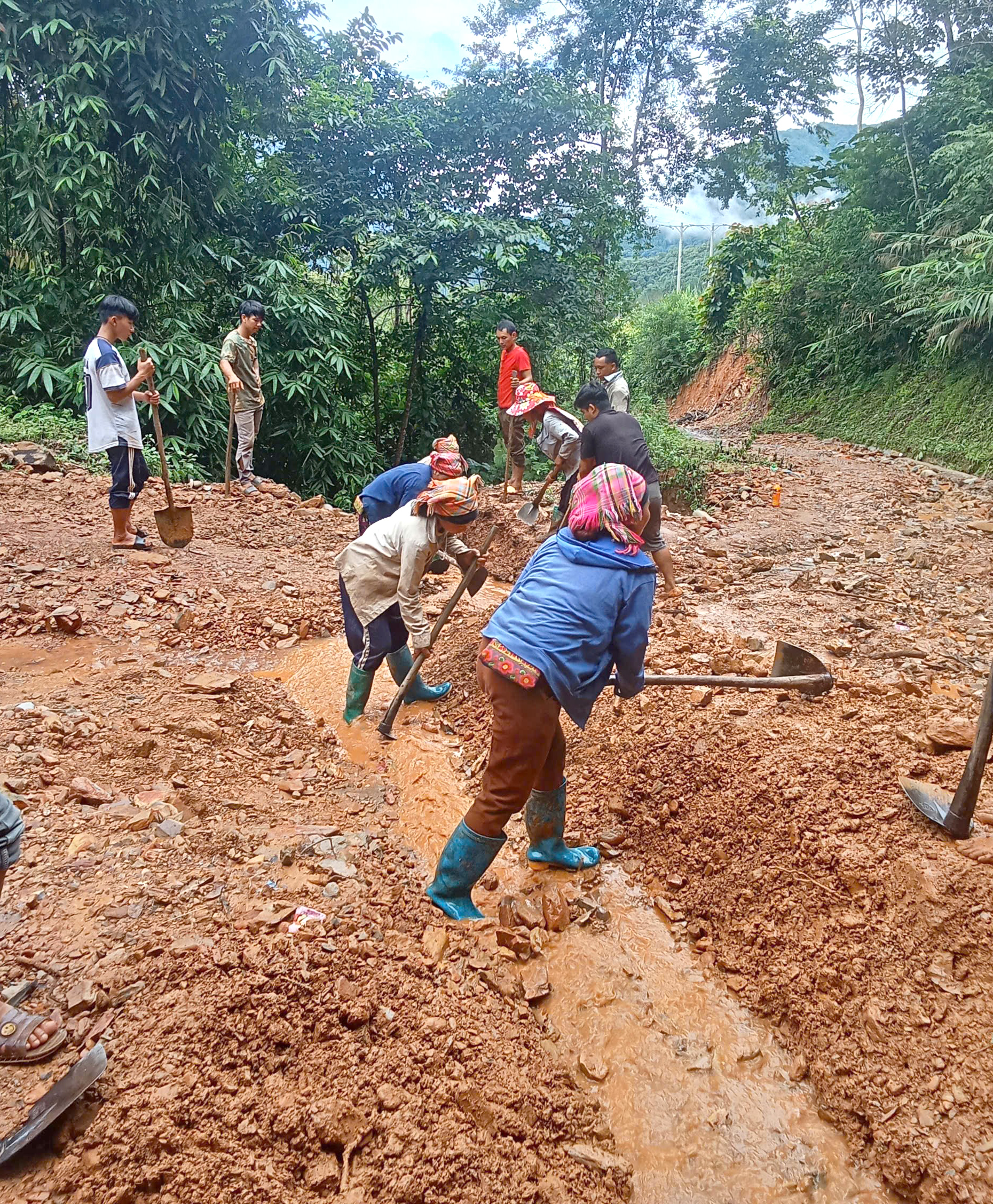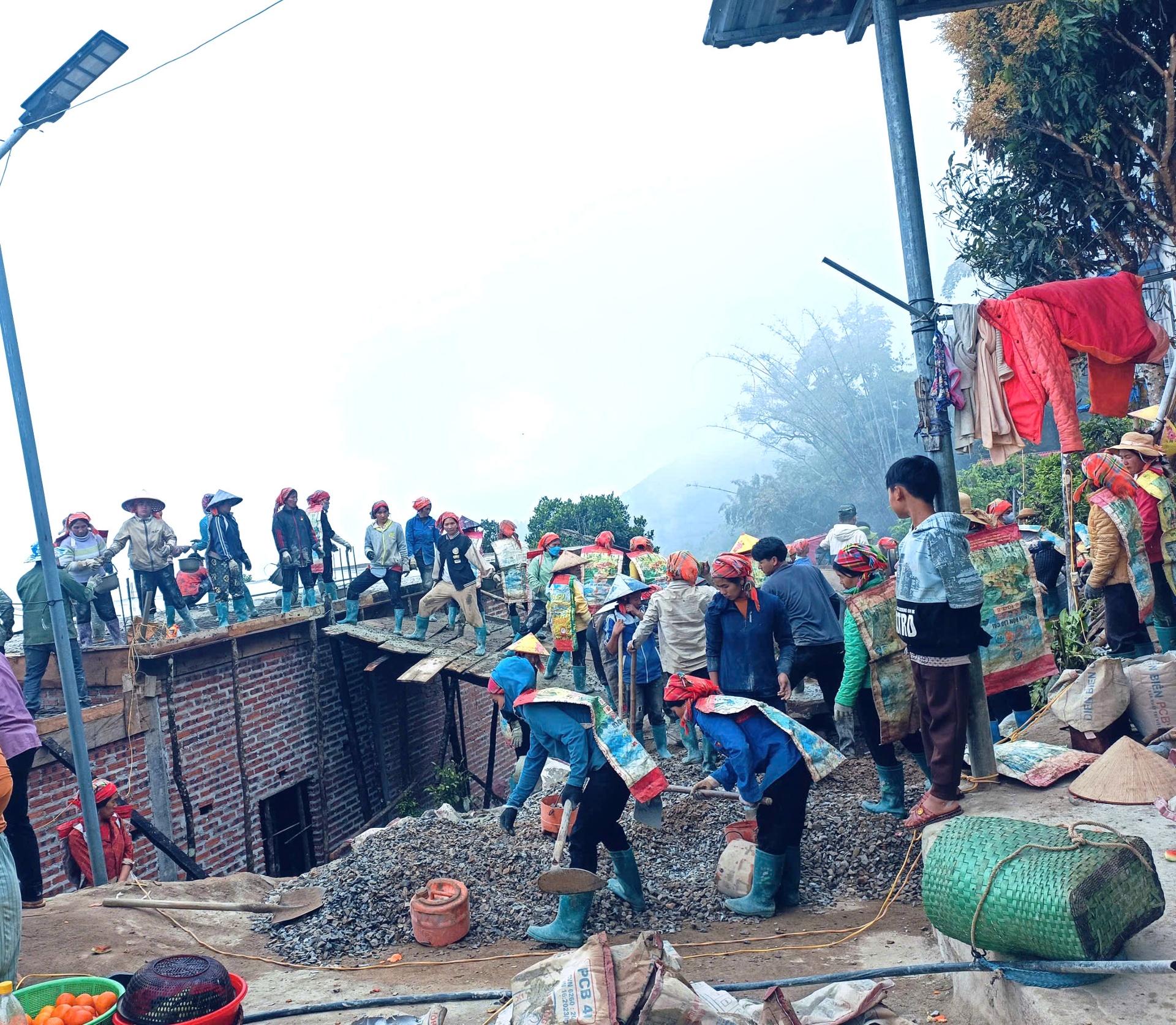 Hội viên phụ nữ xã Thu Lũm giúp nhau làm nhà.