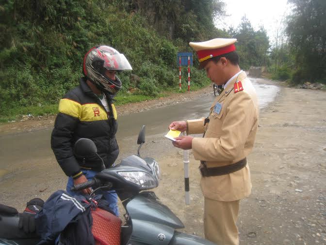 …kiểm tra giấy phép của người và phương tiện tham gia giao thông tại xã San Thàng, TP Lai Châu.