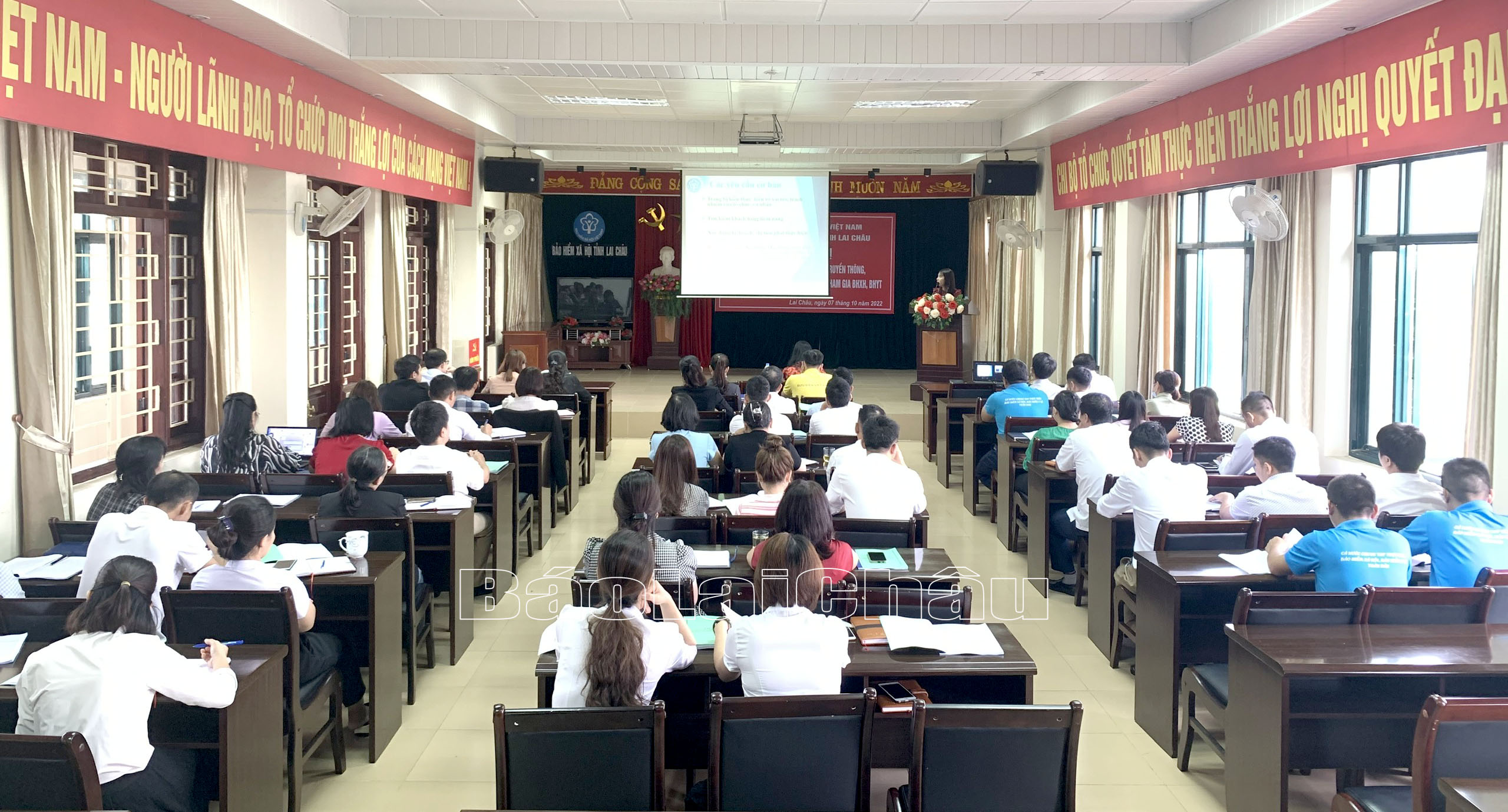 Tham dự Hội nghị có gần 60 cán bộ, viên chức và cộng tác viên tuyên truyền (là cán bộ phụ trách công tác phối hợp truyền thông BHXH, BHYT thuộc Hội Nông dân tỉnh, Hội Liên hiệp phụ nữ tỉnh, Bưu điện tỉnh, Viettel Lai Châu).