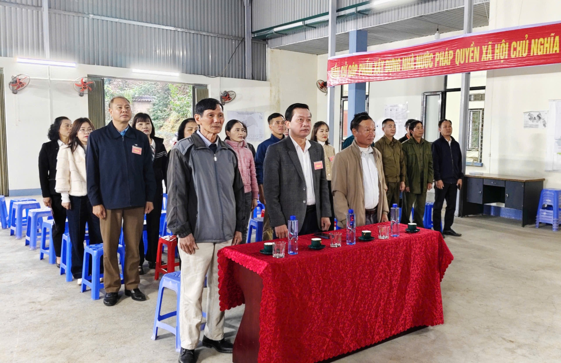Đúng 6 giờ 45 phút sáng, 16 khu vực bỏ phiếu trên địa bàn xã Mường Khoa đồng loạt tổ chức lễ khai mạc.