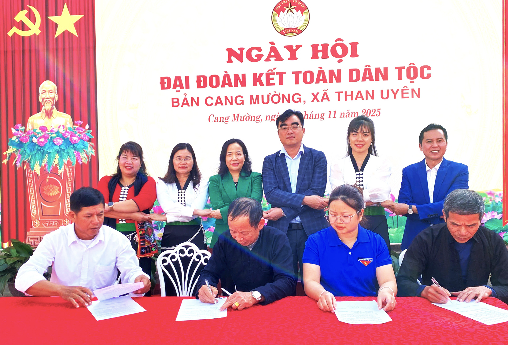 Đại diện Ban công tác Mặt trận và các đoàn thể bản Cang Mường ký Giao ước thi đua năm 2026.