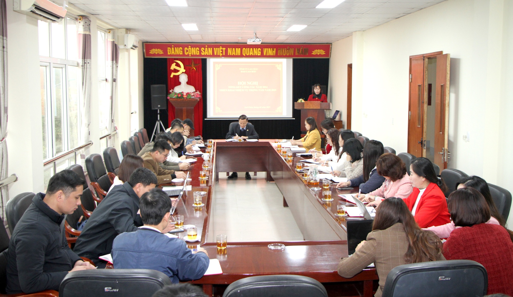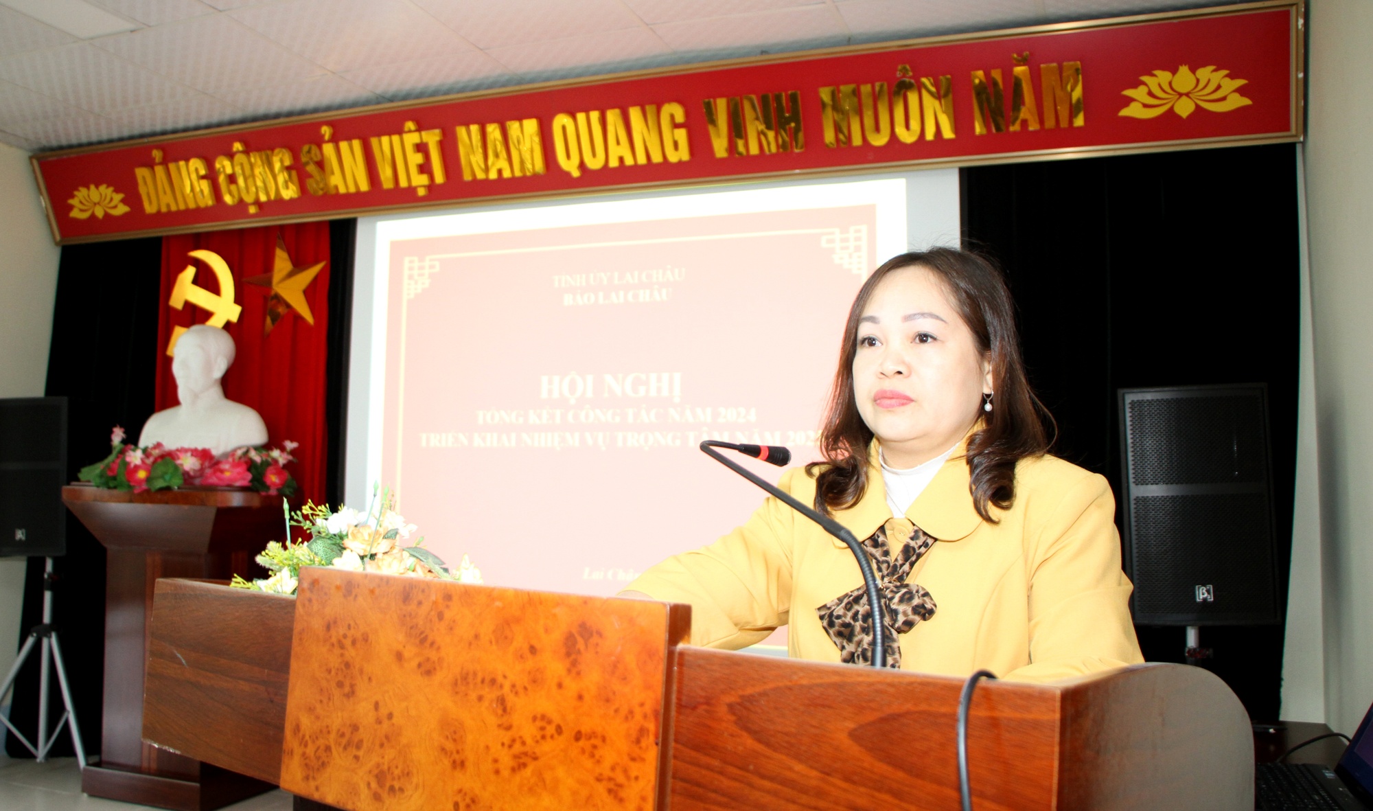 Đồng chí Vũ Thị Thu Hương – Phó Tổng Biên tập Báo Lai Châu báo cáo kết quả năm 2024, triển khai nhiệm vụ năm 2025.