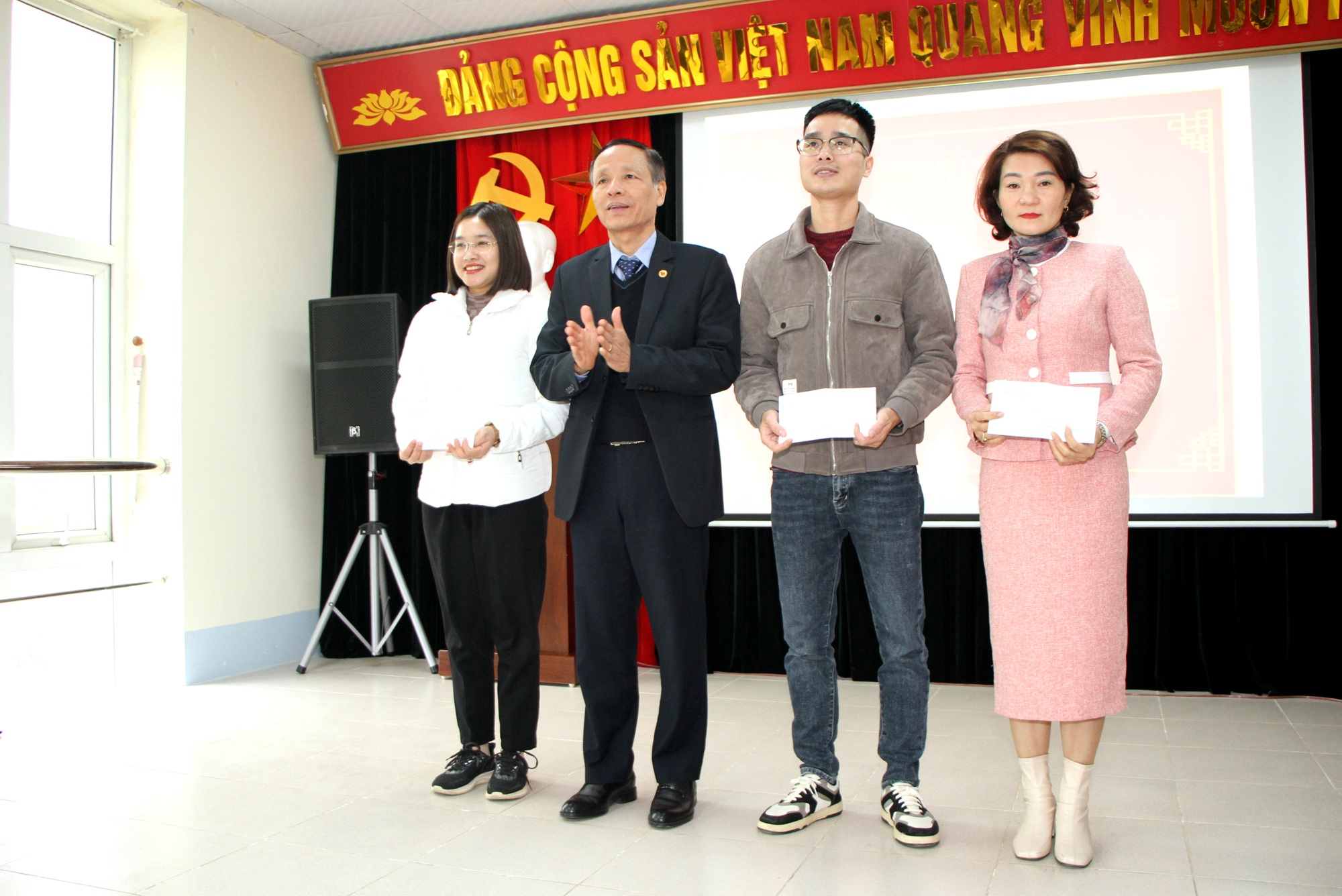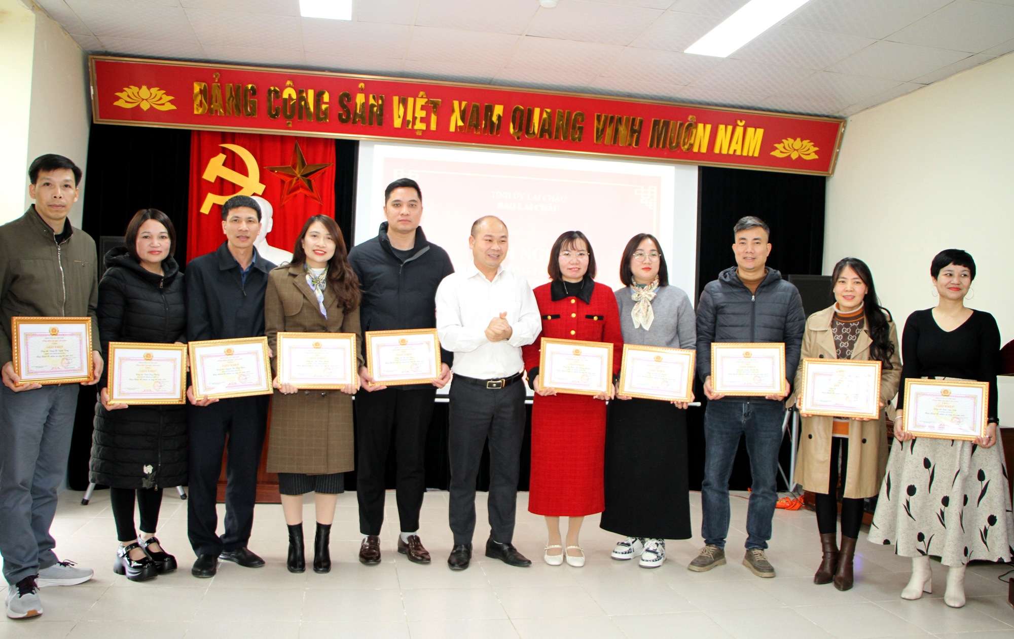 Đồng chí Dư Khánh Kiên – Phó Tổng Biên tập Báo Lai Châu trao giấy khen cho các cá nhân.