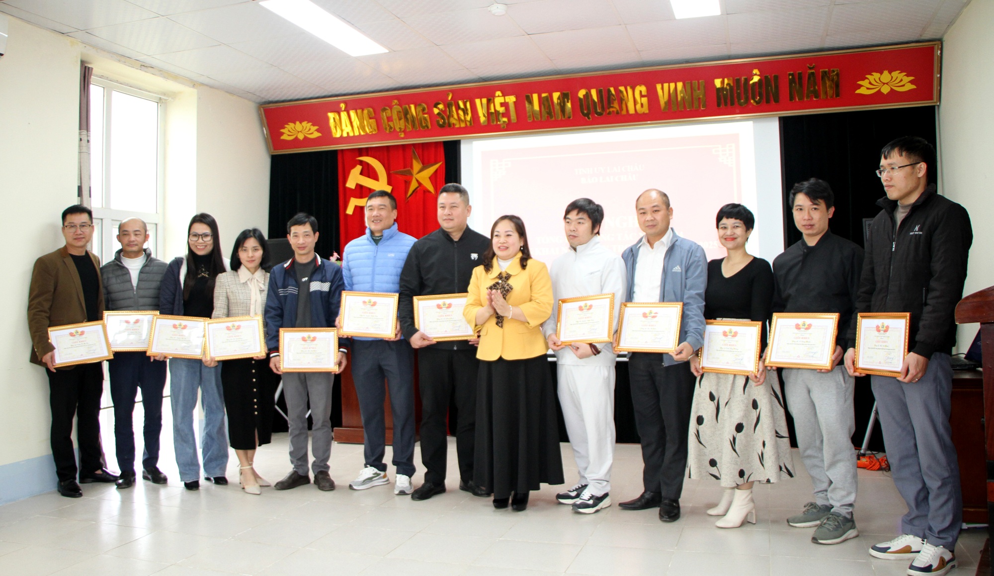 Nhân dịp này, Báo Lai Châu đã tặng danh hiệu Chiến sỹ thi đua cấp cơ sở cho 17 cá nhân; giấy khen của Tổng Biên tập hoàn thành tốt nhiệm vụ công tác năm 2024 cho 12 cá nhân; khen thưởng 13 đoàn viên tiêu biểu trong hoạt động công đoàn năm 2024; khen thưởng đột xuất cho các tác giả đạt giải của trung ương.