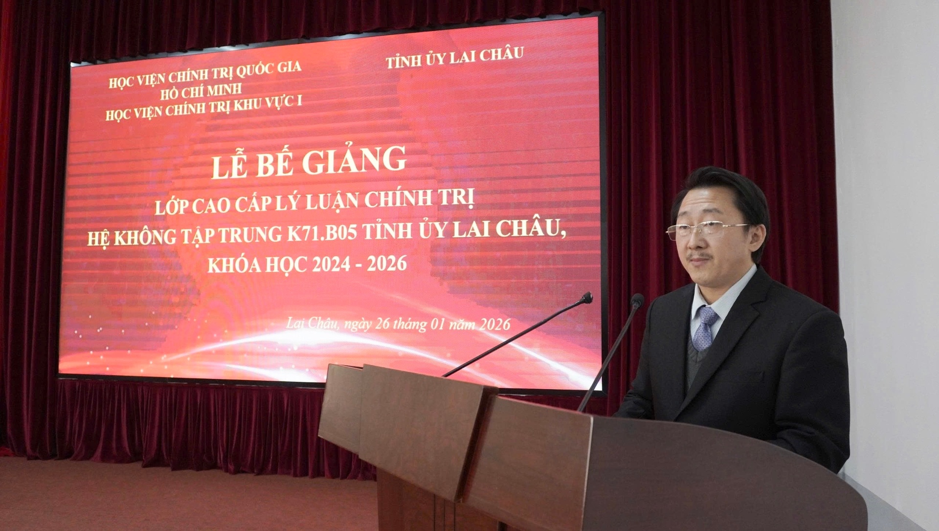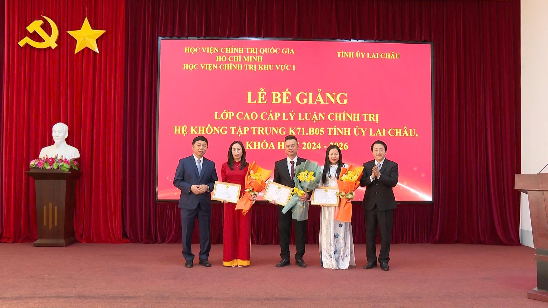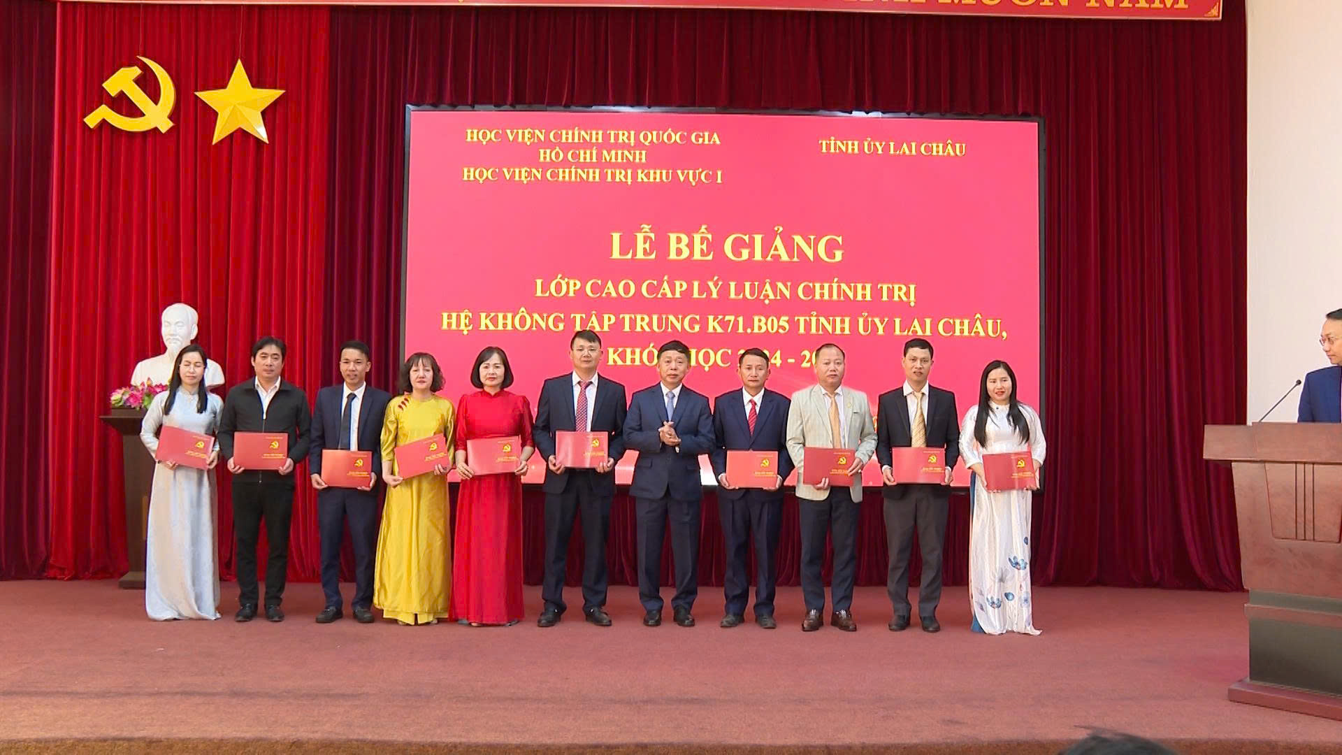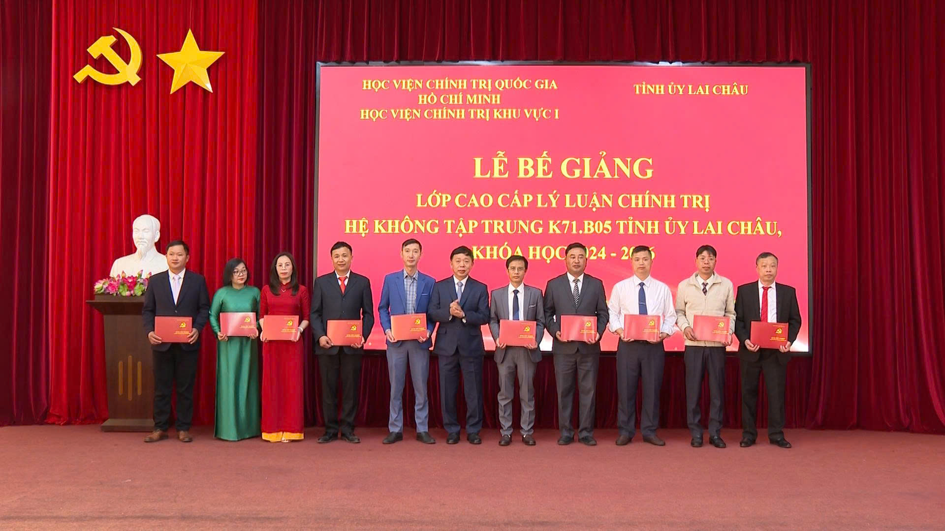 Sáng 26/1, Học viện Chính trị khu vực I (Học viện Chính trị Quốc gia Hồ Chí Minh) phối hợp với Tỉnh ủy Lai Châu tổ chức lễ bế giảng và trao bằng tốt nghiệp cho học viên lớp Cao cấp lý luận chính trị hệ không tập trung K71.B05, khóa học 2024 - 2026, mở tại tỉnh Lai Châu.