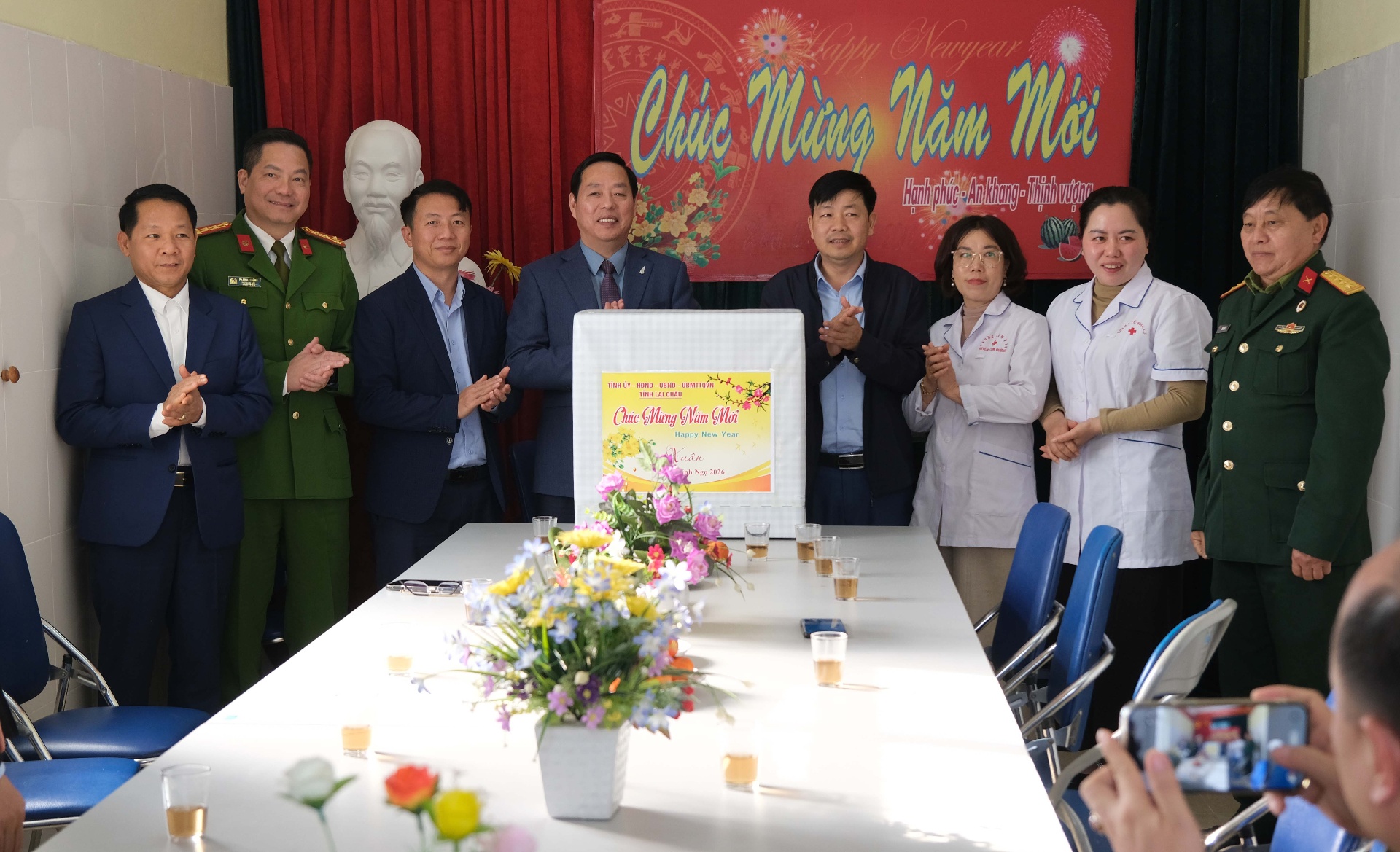 Đoàn đã đến thăm, trao quà cho gia đình bà Lò Thị Po (vợ liệt sĩ) ở bản Nậm Cấu và gia đình bà Nguyễn Thị Hoa (khu vực bản Sân Bay); đồng thời thăm, tặng quà cán bộ, y bác sĩ Trạm Y tế xã Bình Lư – lực lượng đang trực tiếp thực hiện nhiệm vụ chăm sóc sức khỏe nhân dân trong dịp tết.