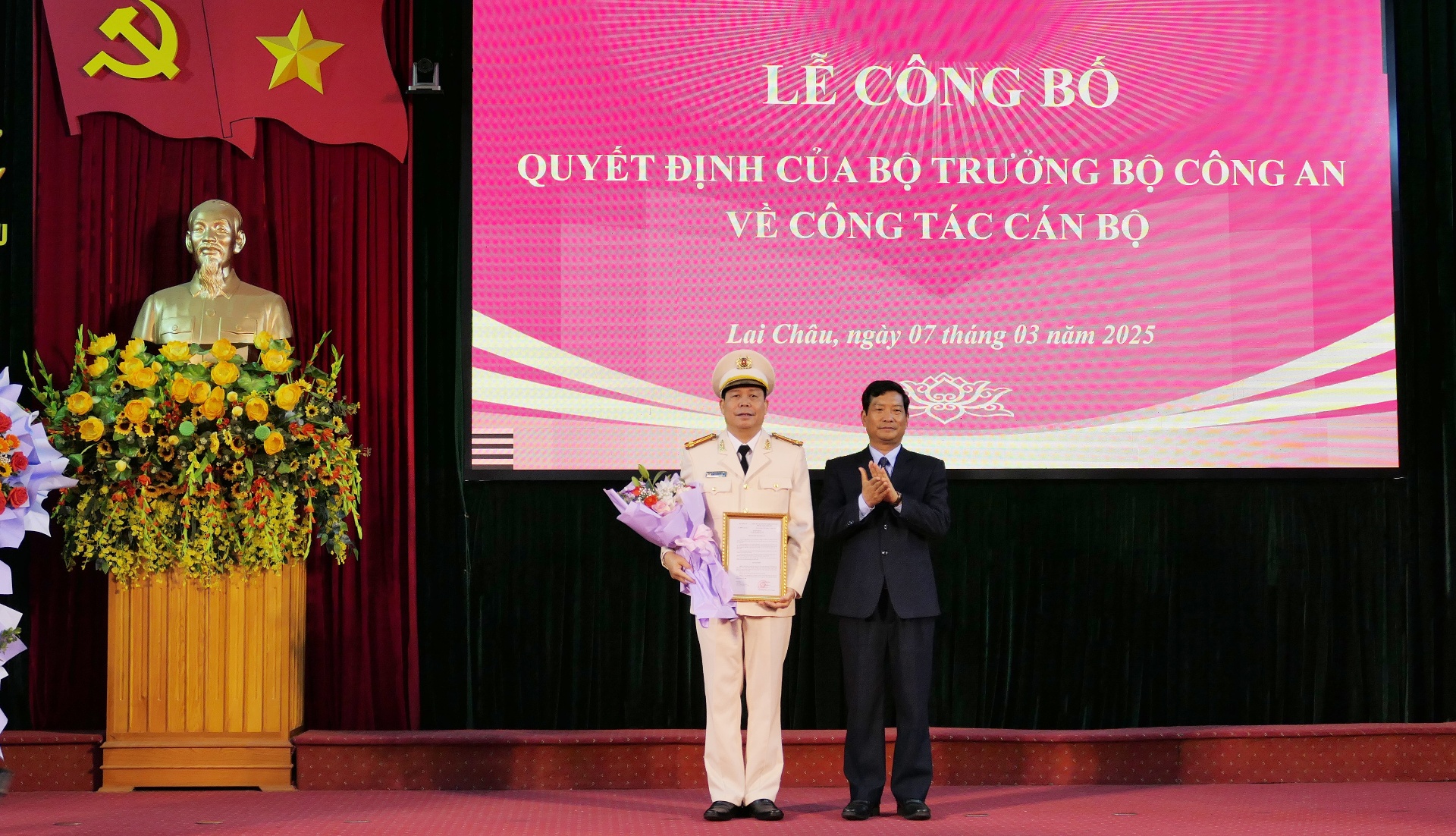 Tại buổi Lễ đã công bố Quyết định số 1463/QĐ-BCA, ngày 6/3/2025 của Bộ trưởng Bộ Công an về việc bổ nhiệm đồng chí Thượng tá Khoàng Văn Thương – Chánh Văn phòng Cơ quan Cảnh sát Điều tra Công an tỉnh Lai Châu giữ chức vụ Phó Giám đốc Công an tỉnh.