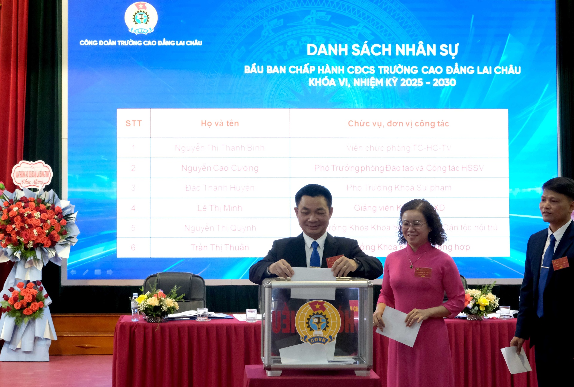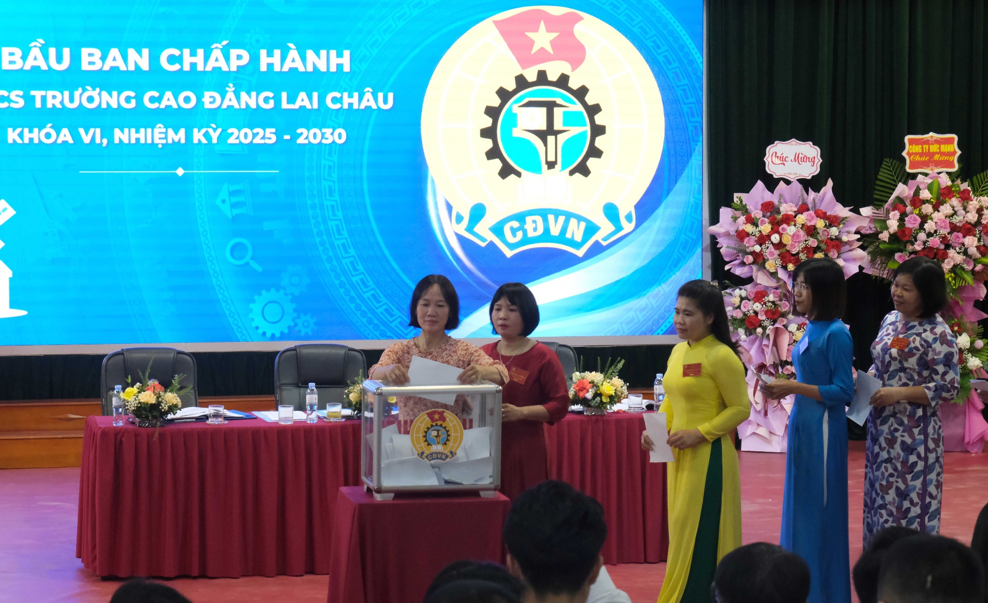 Đại hội đã bầu Ban Chấp hành Công đoàn cơ sở Trường Cao đẳng Lai Châu khóa VI, nhiệm kỳ 2025 - 2030 gồm 5 đồng chí; đồng chí Nguyễn Thị Thanh Bình được tín nhiệm bầu giữ chức Chủ tịch Công đoàn Trường Cao đẳng Lai Châu; bầu đoàn đại biểu dự Đại hội Công đoàn tỉnh Lai Châu lần thứ XIV.