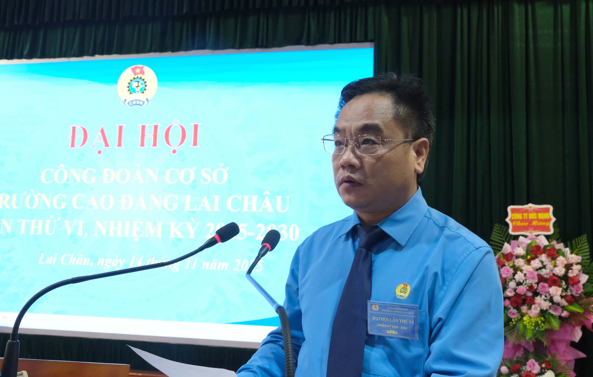 Phát biểu tại đại hội, các đồng chí: Lương Xuân Trường - Phó Chủ tịch LĐLĐ tỉnh; Lò Việt Tuyển - Bí thư Đảng ủy, Hiệu trưởng nhà trường đã ghi nhận và đánh giá cao những kết quả Ban Chấp hành khóa V đã đạt được, đồng thời đề nghị, Công đoàn Trường tiếp tục đổi mới hoạt động, phát huy trí tuệ, tinh thần trách nhiệm của đội ngũ cán bộ, giảng viên, người lao động, xây dựng môi trường làm việc chuyên nghiệp, sáng tạo, góp phần thực hiện thắng lợi Nghị quyết Đại hội Đảng bộ Trường và Nghị quyết Đại hội Công đoàn các cấp.