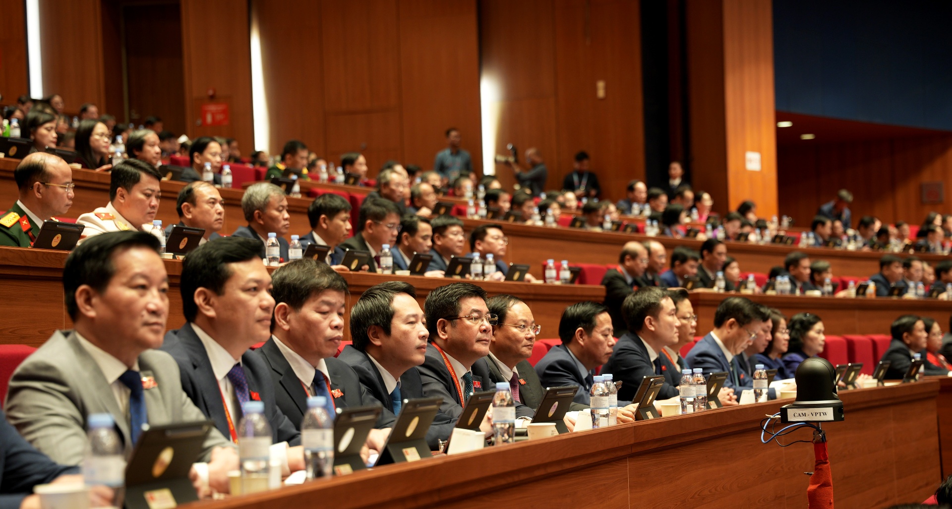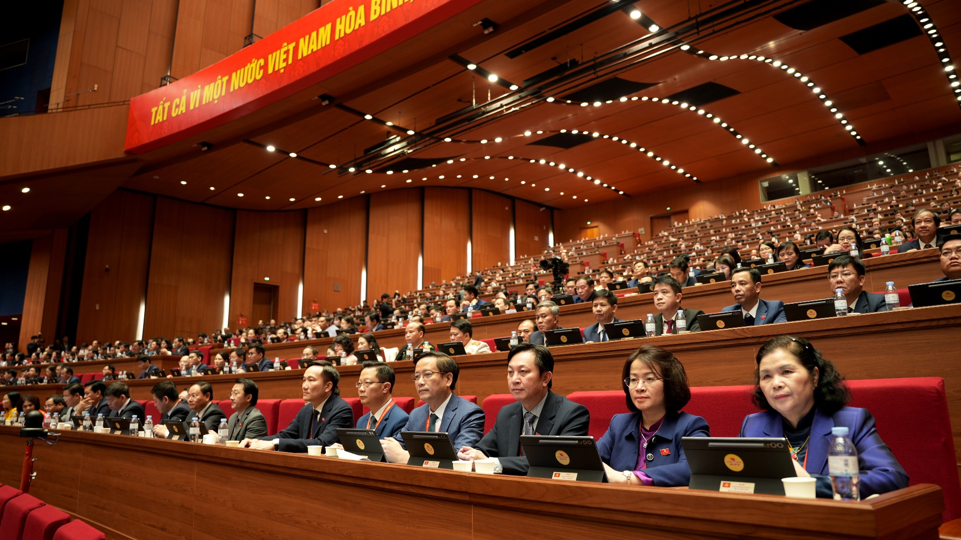 Tổng Bí thư Tô Lâm và Ủy viên Bộ Chính trị, Thường trực Ban Bí thư Trần Cẩm Tú dự phiên thảo luận tại hội trường về văn kiện Đại hội.