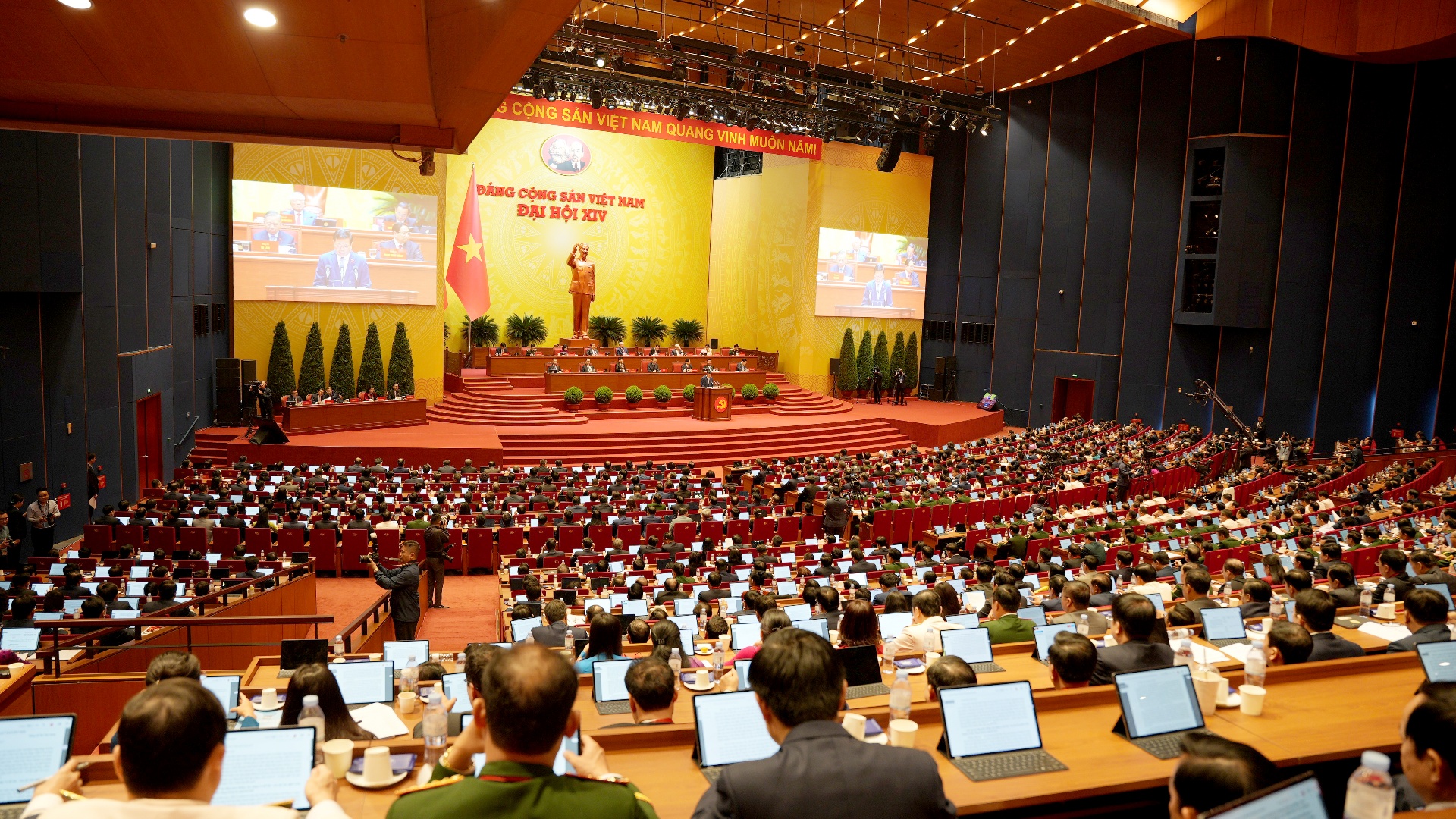 Sáng 21/1, Đại hội XIV của Đảng với phiên thảo luận tại hội trường về văn kiện Đại hội. Chủ tịch nước Lương Cường điều hành phiên thảo luận.