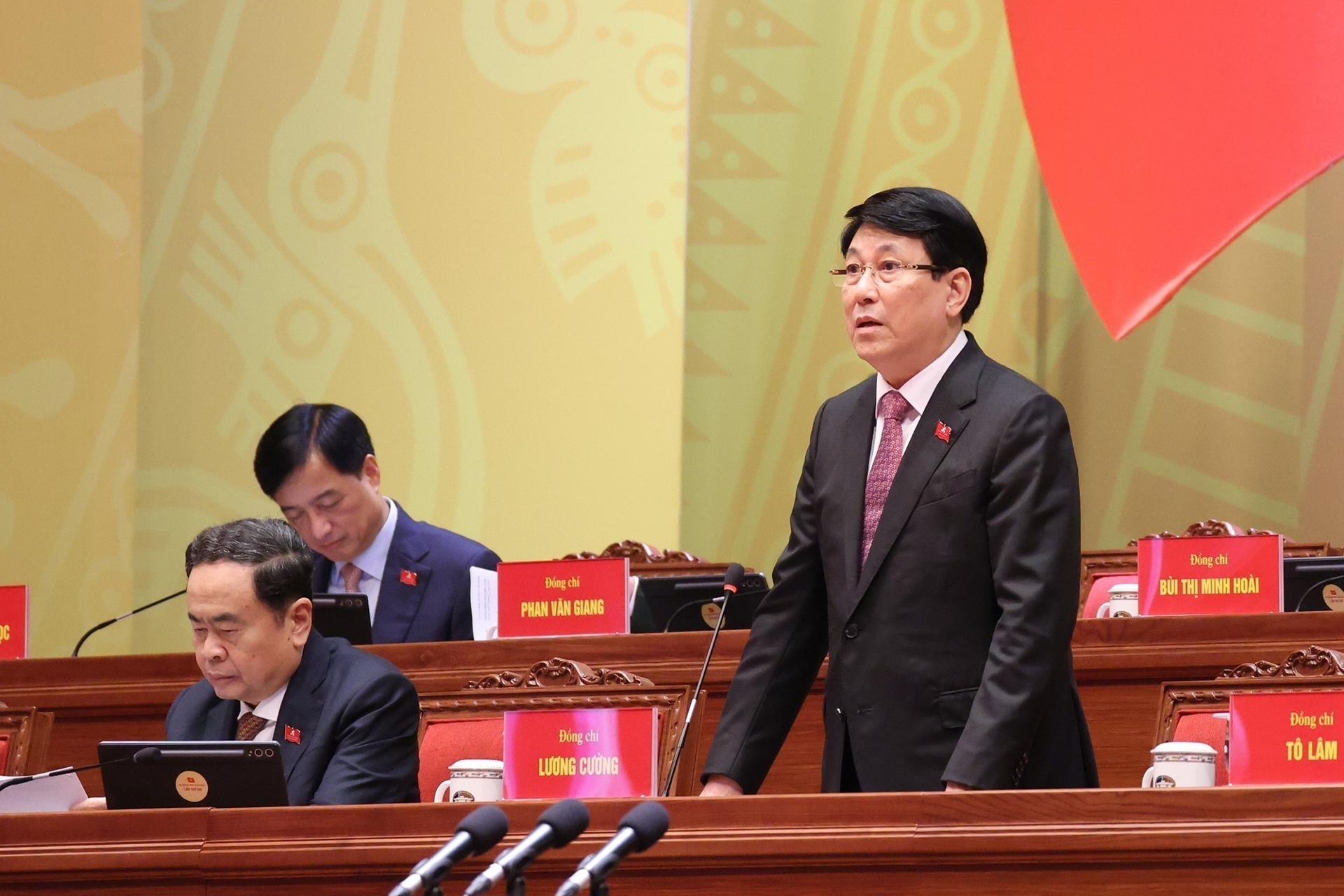 Đồng chí Lương Cường - Ủy viên Bộ Chính trị, Chủ tịch nước điều hành phiên thảo luận.