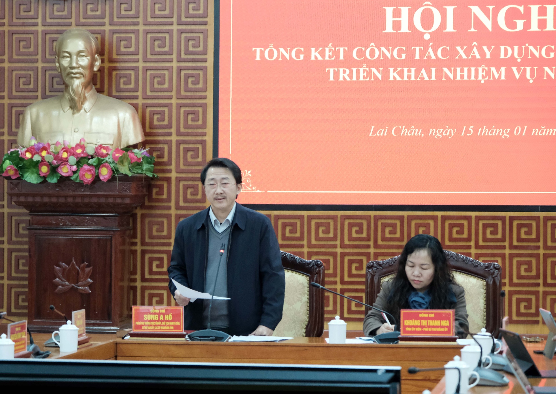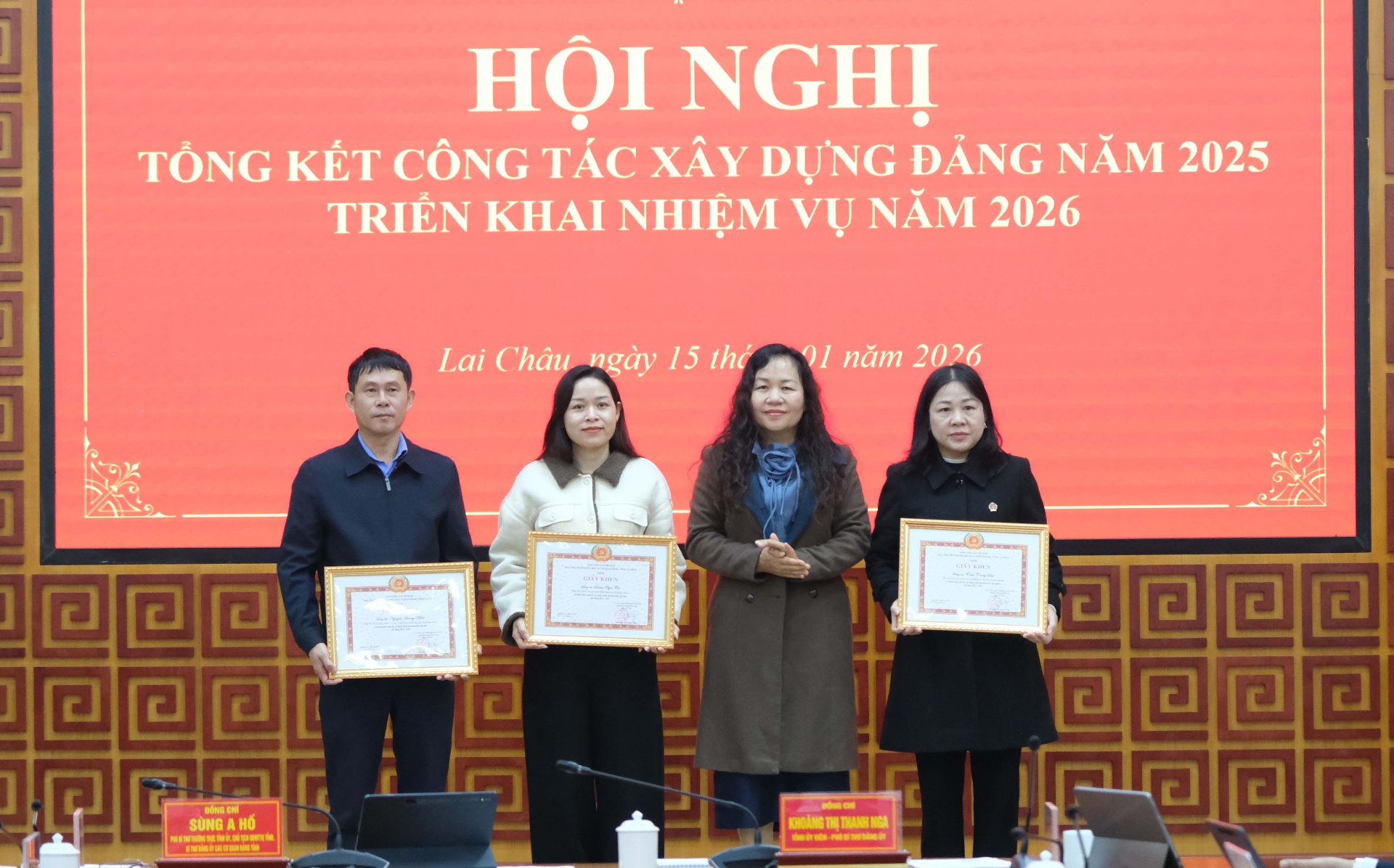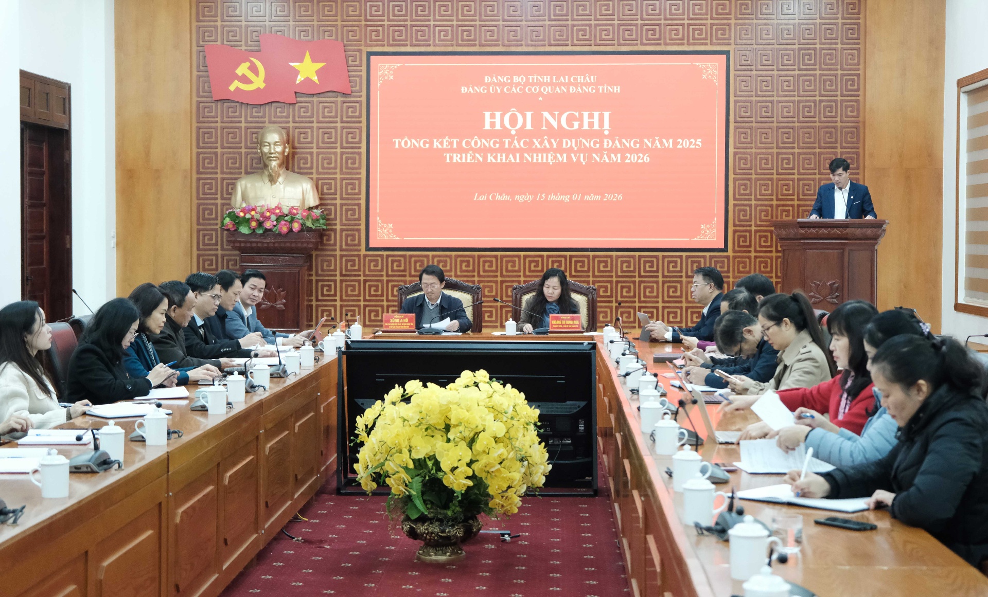 Sáng 15/1 Đảng bộ các cơ quan Đảng tỉnh tổ chức Hội nghị tổng kết công tác xây dựng Đảng năm 2025, triển khai nhiệm vụ trọng tâm năm 2026. Các đồng chí Sùng A Hồ – Phó Bí thư Thường trực Tỉnh ủy, Chủ tịch Ủy ban MTTQ Việt Nam tỉnh, Bí thư Đảng ủy các cơ quan Đảng tỉnh; Khoàng Thị Thanh Nga – Ủy viên Ban Chấp hành Đảng bộ tỉnh, Phó Bí thư Đảng ủy các cơ quan Đảng tỉnh chủ trì hội nghị.