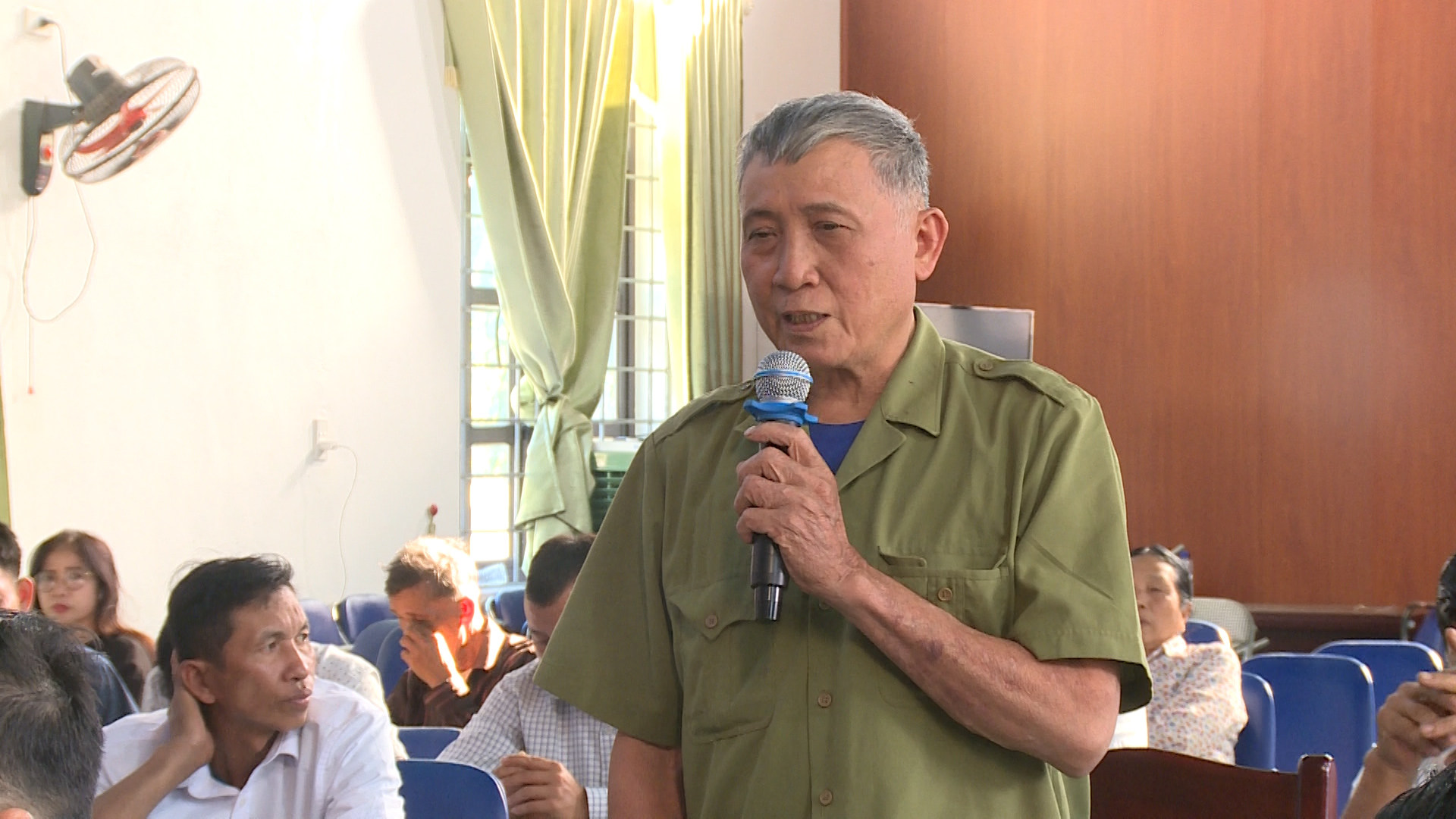 Cử tri xã Mường Mô phát biểu ý kiến tại buổi tiếp xúc.
