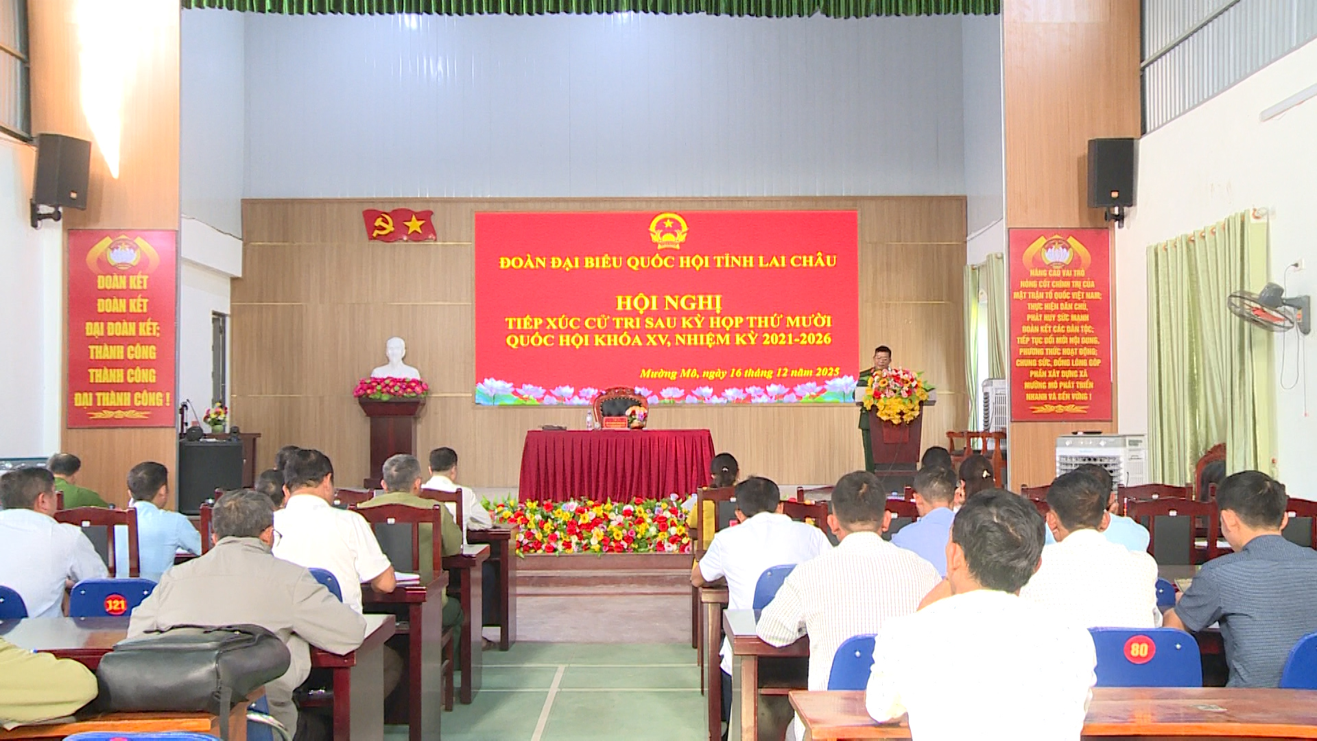 Thực hiện chương trình tiếp xúc cử tri sau Kỳ họp thứ 10, Quốc hội khóa XV, ngày 16/12, Đoàn Đại biểu Quốc hội tỉnh Lai Châu do đồng chí Hoàng Thanh Bình - Phó Chỉ huy trưởng Bộ Chỉ huy Quân sự tỉnh, Đại biểu Quốc hội khóa XV của tỉnh làm trưởng đoàn đã có buổi tiếp xúc cử tri tại xã Mường Mô.