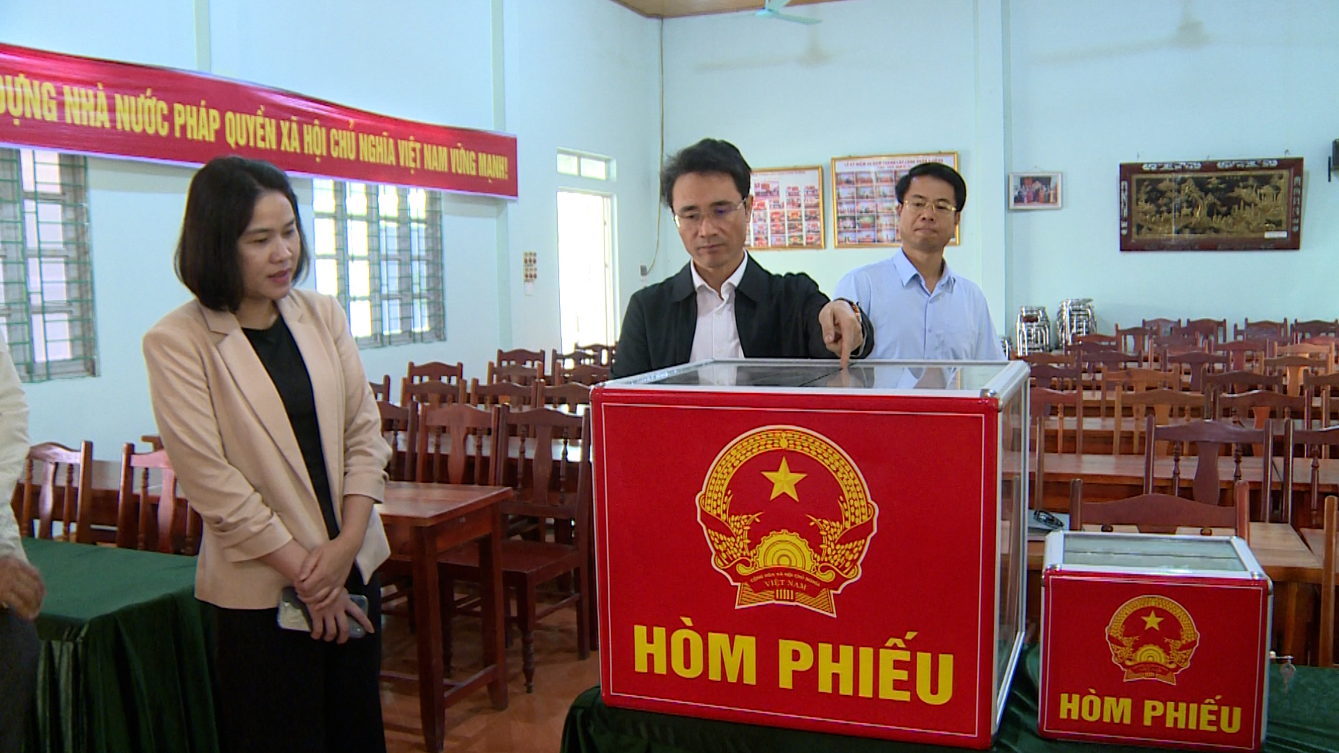 Trưởng Ban Tổ chức Tỉnh ủy Lê Thị Hường kiểm tra công tác bầu cử tại xã Lê Lợi