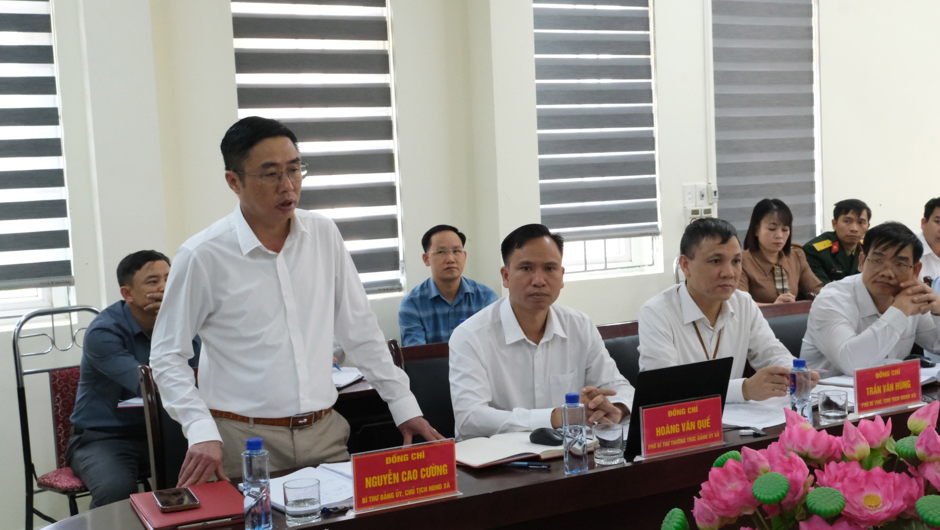 Đồng Chí Nguyễn Cao Cường - Bí thư Đảng ủy xã Hồng Thu báo cáo tình hình chung của xã với đoàn kiểm tra.