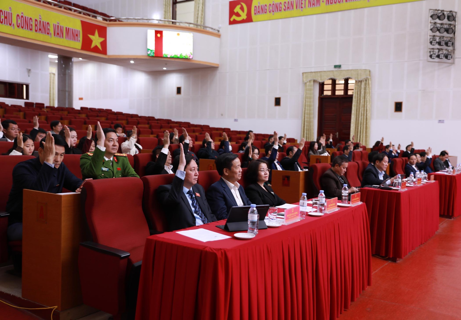 Các đại biểu HĐND tỉnh biểu quyết miễn nhiệm chức vụ Chủ tịch UBND tỉnh nhiệm kỳ 2021 - 2026 đối với đồng chí Lê Văn Lương.