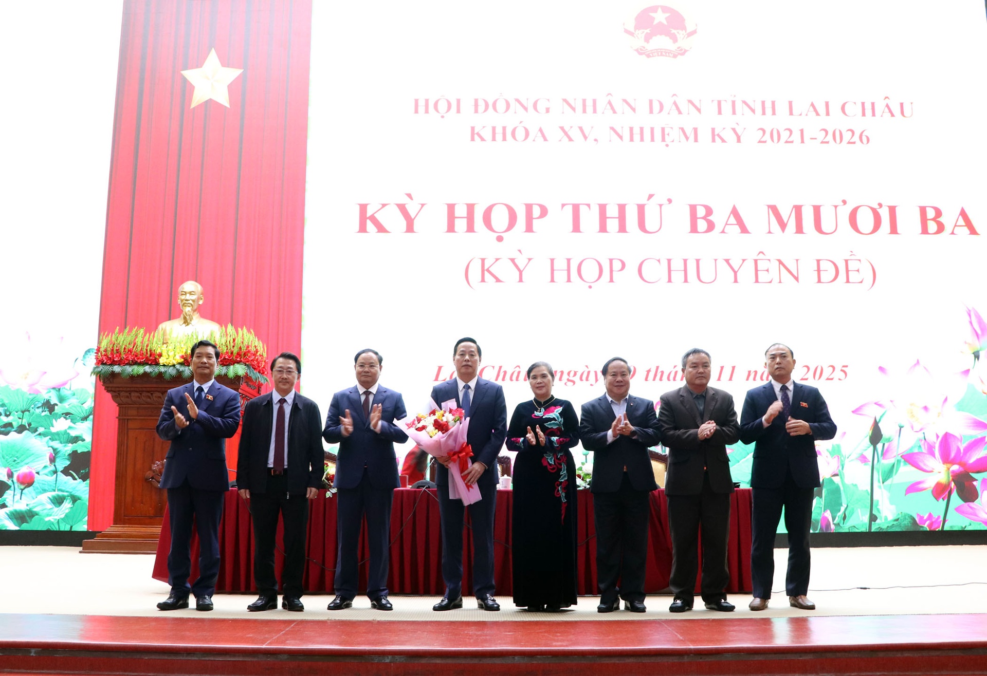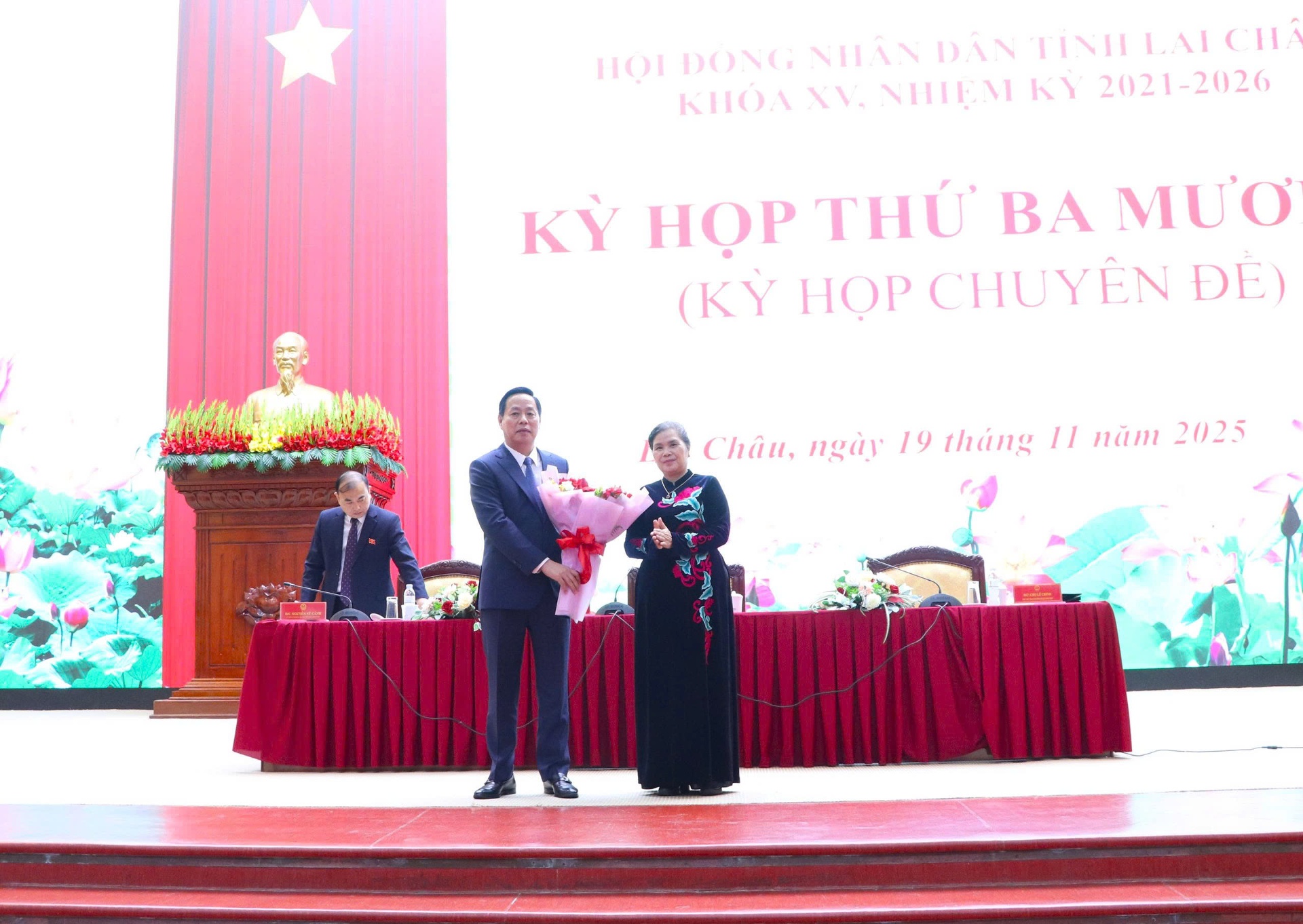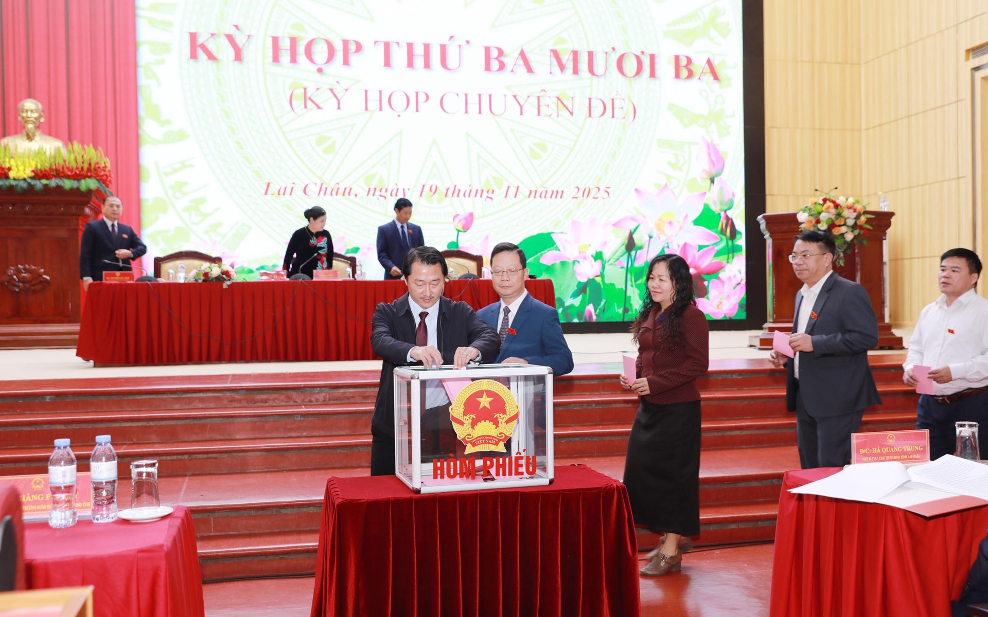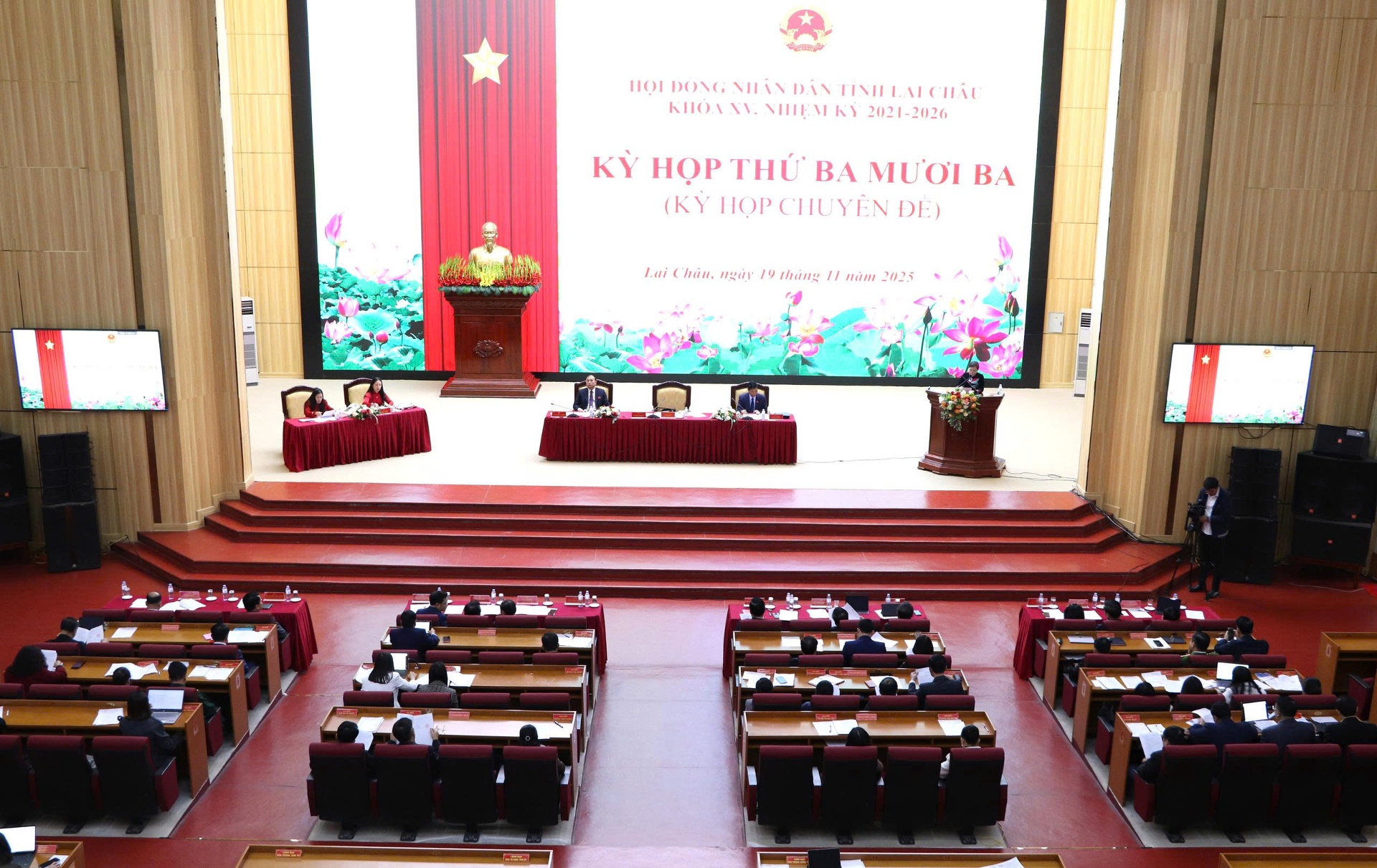 Sáng 19/11, Hội đồng nhân dân (HĐND) tỉnh Lai Châu khóa XV, nhiệm kỳ 2021-2026 tổ chức Kỳ họp thứ ba mươi ba (kỳ họp chuyên đề) để thực hiện công tác cán bộ theo thẩm quyền. Đồng chí Giàng Páo Mỷ - Ủy viên Ban Chấp hành Trung ương Đảng, Chủ tịch HĐND, Trưởng đoàn Đại biểu Quốc hội tỉnh và các đồng chí Phó Chủ tịch HĐND tỉnh điều hành kỳ họp.
