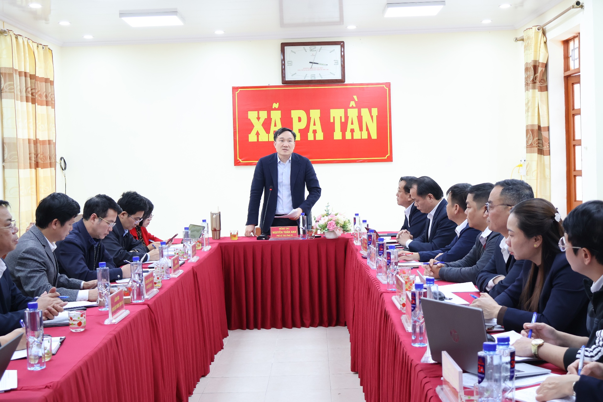 Phát biểu tại buổi làm việc, Phó Bí thư Tỉnh ủy Nguyễn Tuấn Anh yêu cầu xã đẩy mạnh phát triển cây sâm, tam thất, nhất diệp thất chi hoa, hà thủ ô…; đầu tư đúng trọng tâm, trọng điểm các công trình, dự án, các tiềm năng, lợi thế; xây dựng chợ phiên theo hướng có sản phẩm đặc trưng địa phương; phát triển đảng viên là trưởng bản, trưởng ban công tác mặt trận; giải quyết các đơn thư khiếu nại, tránh tình trạng vượt cấp; thường xuyên giám sát địa bàn, kịp thời giải quyết các mâu thuẫn, xung đột tại cơ sở; phối hợp với lực lượng biên phòng tuần tra an ninh biên giới; phát huy các mô hình xóa bỏ hủ tục, phong tục tập quán lạc hậu; quan tâm phân bổ đất sản xuất cho người dân...