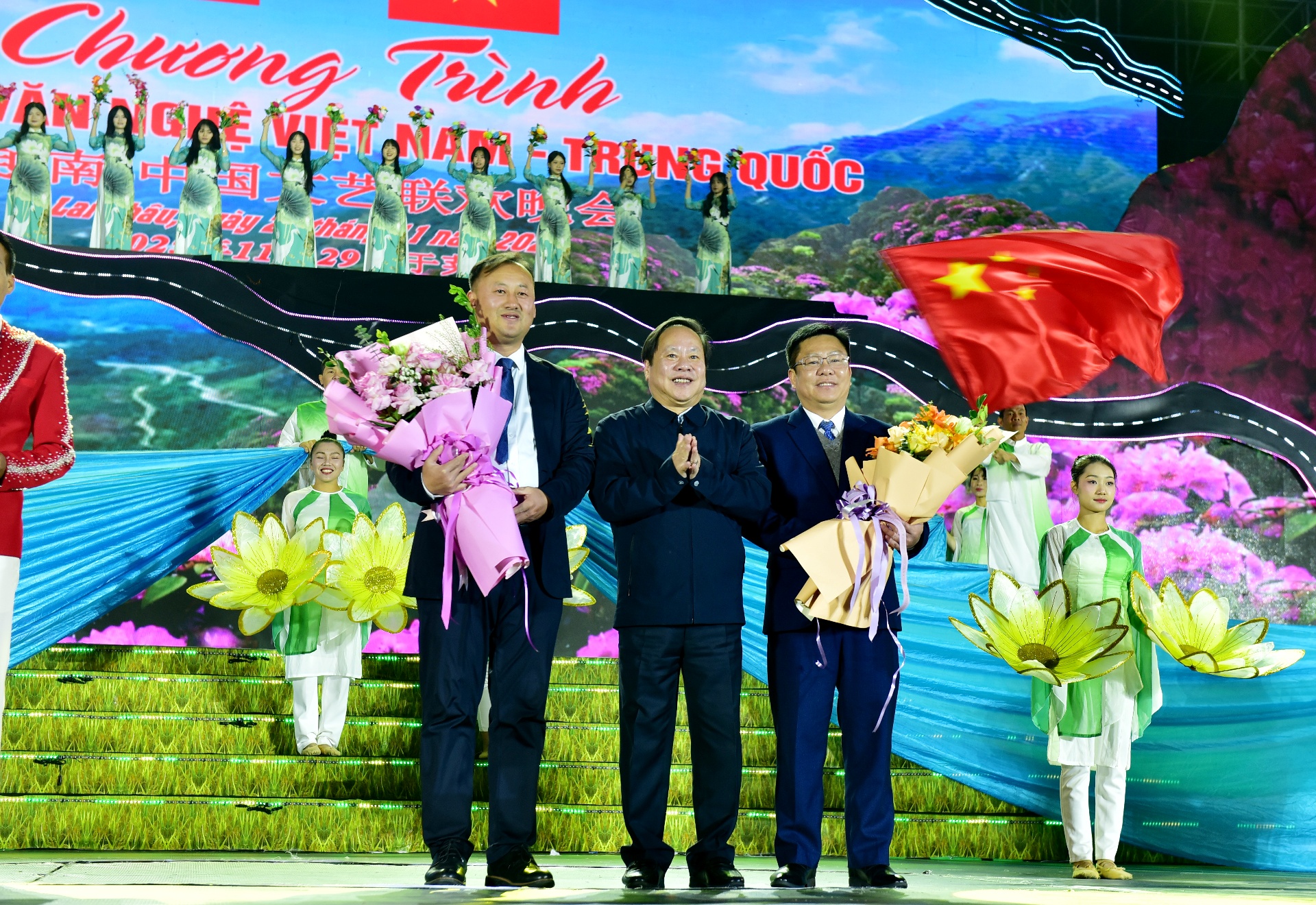 Màn song ca “Tình bạn” giữa ca sĩ tỉnh Lai Châu (Việt Nam) và ca sĩ Đoàn Nghệ thuật Kim Bình (Trung Quốc) tạo điểm nhấn trong chương trình giao lưu.