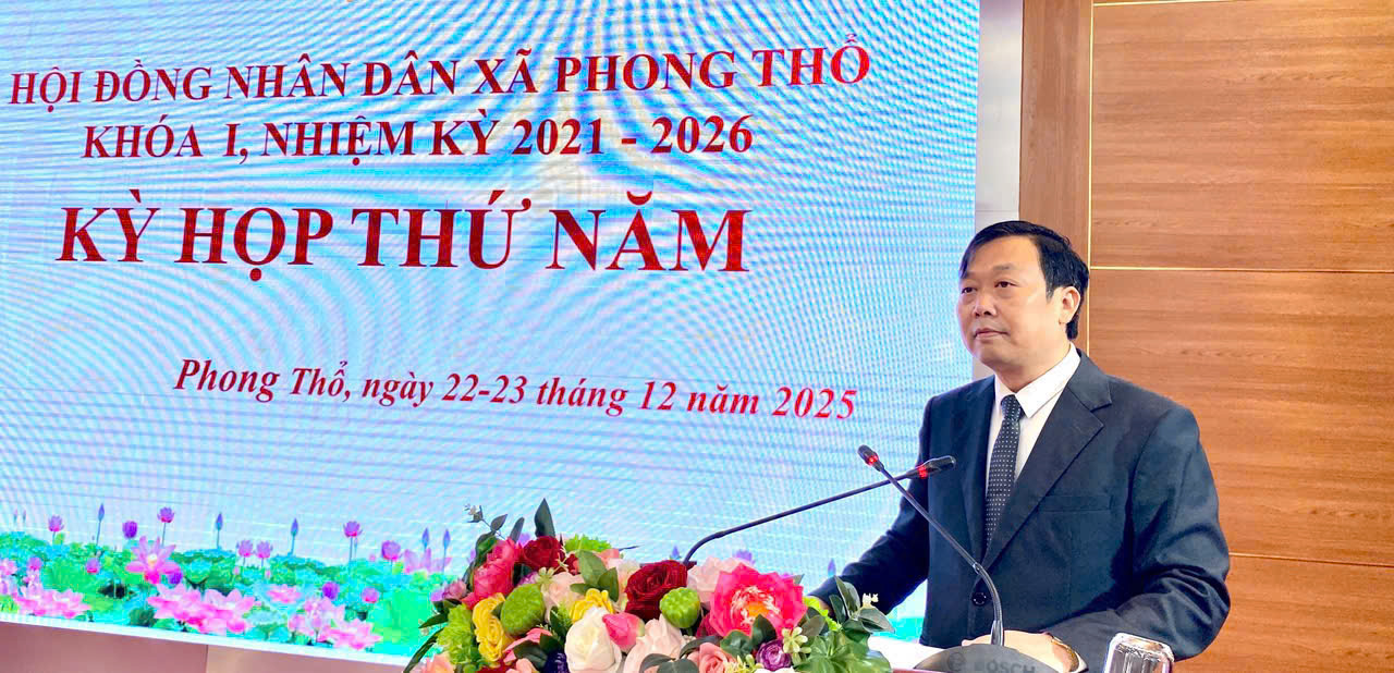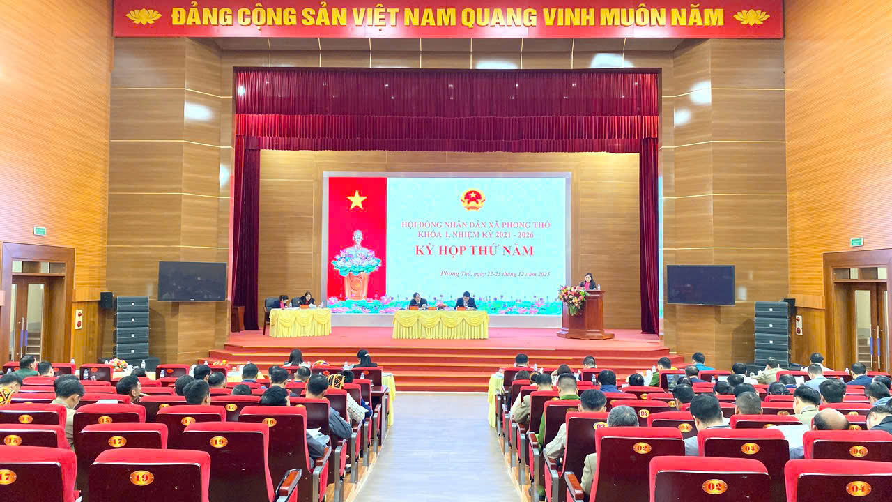 Trong 2 ngày 22-23/12, HĐND xã Phong Thổ khóa I, nhiệm kỳ 2021-2026 tổ chức Kỳ họp thứ năm để đánh giá tình hình thực hiện kế hoạch phát triển kinh tế - xã hội, bảo đảm quốc phòng - an ninh năm 2025; kế hoạch phát triển kinh tế - xã hội, bảo đảm quốc phòng - an ninh năm 2026; xem xét và quyết định một số nội dung khác thuộc nhiệm vụ, quyền hạn của HĐND xã.