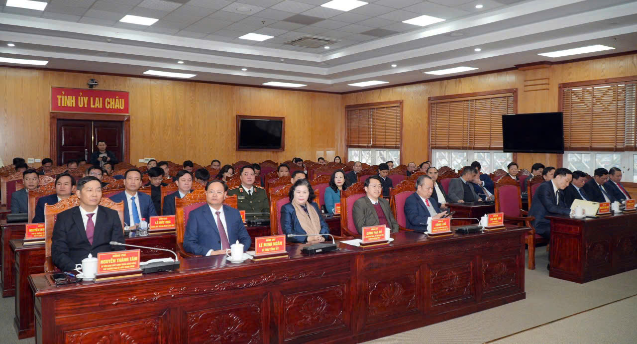 Tại Hội nghị, đồng chí Nguyễn Văn Tùng - Vụ trưởng Vụ địa phương I, Ban Tổ chức Trung ương đã công bố các Quyết định của Ban Bí thư, gồm: Quyết định số 2619-QĐNS/TW, ngày 30/12/2025 của Ban Bí thư điều động, chỉ định giữ chức Phó Bí thư Tỉnh ủy Lai Châu nhiệm kỳ 2025-2030, theo đó, đồng chí Nguyễn Tuấn Anh - Uỷ viên Ban Thường vụ Tỉnh uỷ, Phó Chủ tịch UBND tỉnh Gia Lai thôi tham gia Ban Thường vụ, Ban Chấp hành Tỉnh uỷ Gia Lai nhiệm kỳ 2025-2030; điều động, chỉ định tham gia Ban Chấp hành, Ban Thường vụ và giữ chức Phó Bí thư Tỉnh uỷ Lai Châu nhiệm kỳ 2025-2030. Quyết định 2643-QĐNS/TW, ngày 5/1/2026 của Ban Bí thư chuẩn y đồng chí Nguyễn Ngọc Vinh - Uỷ viên Ban Thường vụ Tỉnh uỷ, Chủ nhiệm Uỷ ban Kiểm tra Tỉnh uỷ Lai Châu giữ chức Phó Bí thư Tỉnh uỷ Lai Châu nhiệm kỳ 2025-2030.