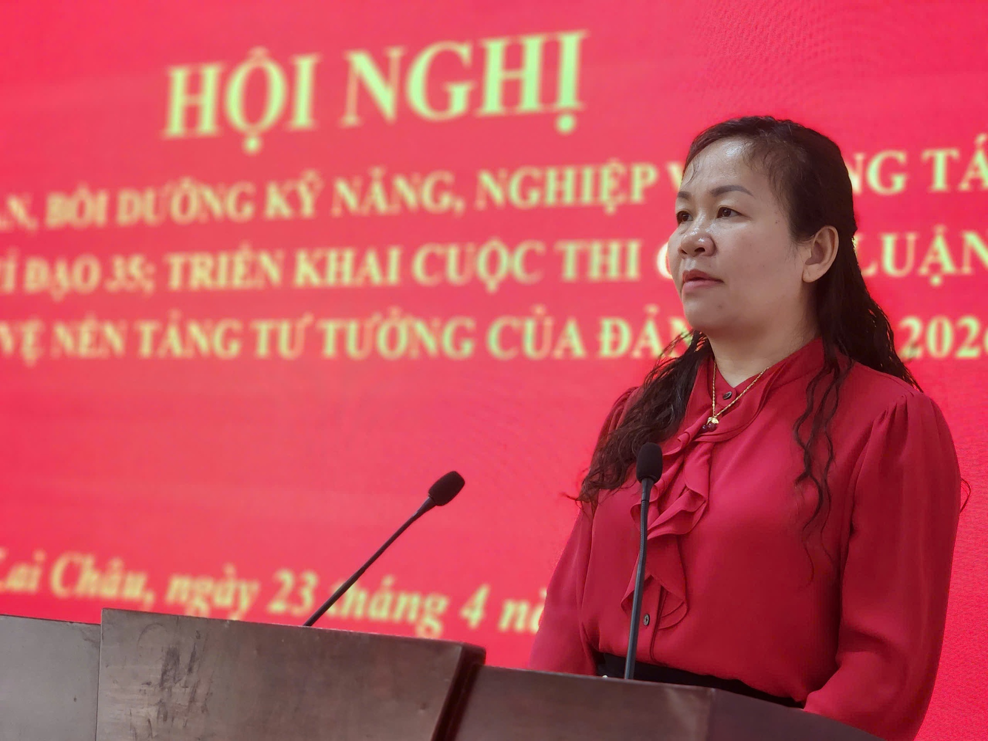 Phát biểu khai mạc, đồng chí Khoàng Thị Thanh Nga - Phó Bí thư Đảng ủy, Trưởng BCĐ 35 Đảng ủy Các cơ quan Đảng tỉnh nhấn mạnh: Hội nghị nhằm nâng cao chất lượng hoạt động của BCĐ 35, đồng thời trang bị kiến thức, kỹ năng viết tin, bài đấu tranh phản bác các quan điểm sai trái, thù địch, tạo tiền đề để các cá nhân tham gia Cuộc thi chính luận về bảo vệ nền tảng tư tưởng của Đảng năm 2026 trên địa bàn tỉnh.