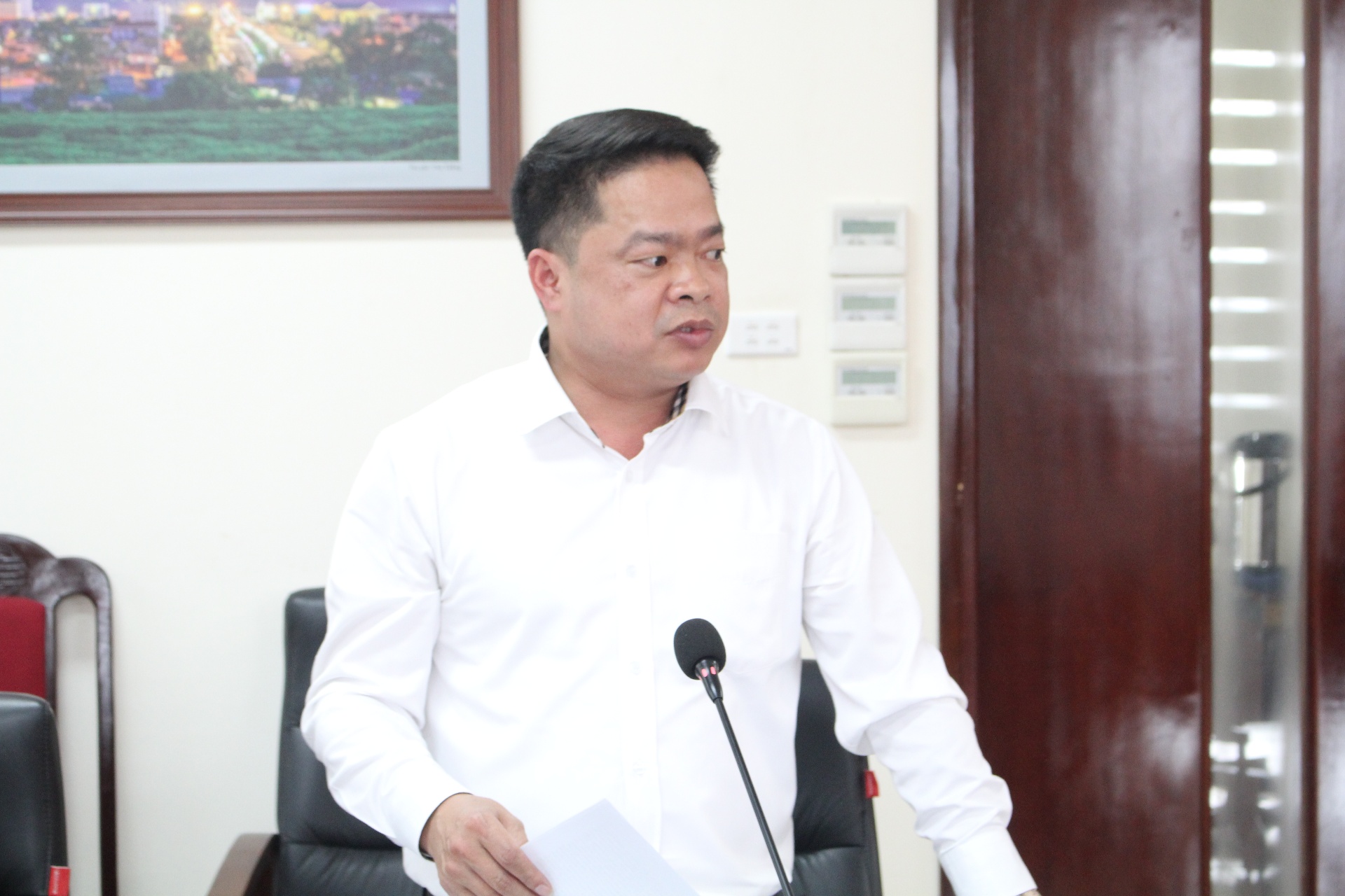 Đồng chí Lê Đức Dục – Ủy viên Ban Thường vụ, Trưởng Ban Tuyên giáo và Dân vận Tỉnh ủy, Ủy viên Ủy ban Bầu cử tỉnh, Trưởng Tiểu ban Tuyên truyền phục vụ bầu cử kết luận họp báo.