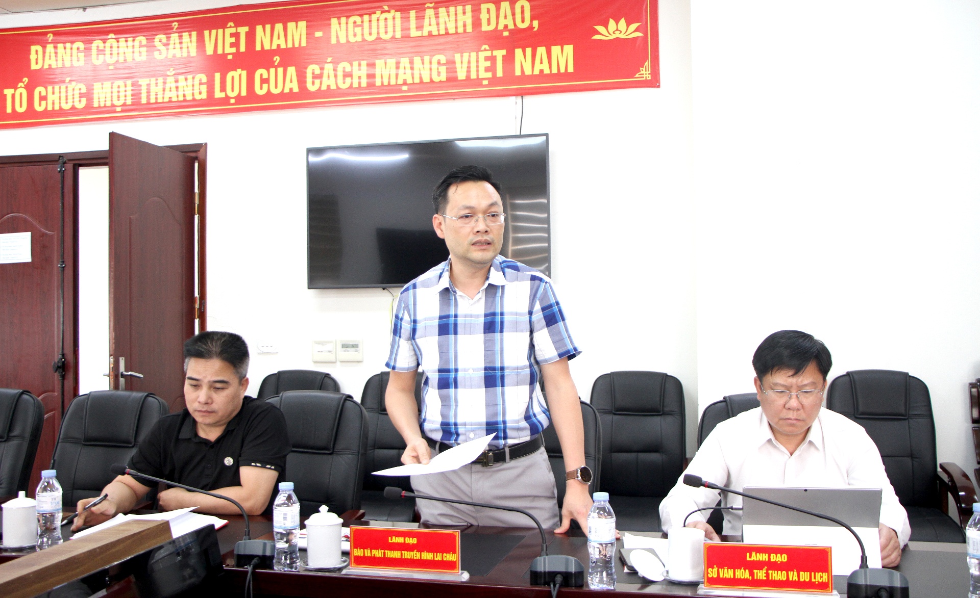 Lãnh đạo Báo và PTTH Lai Châu phát biểu tại họp báo.