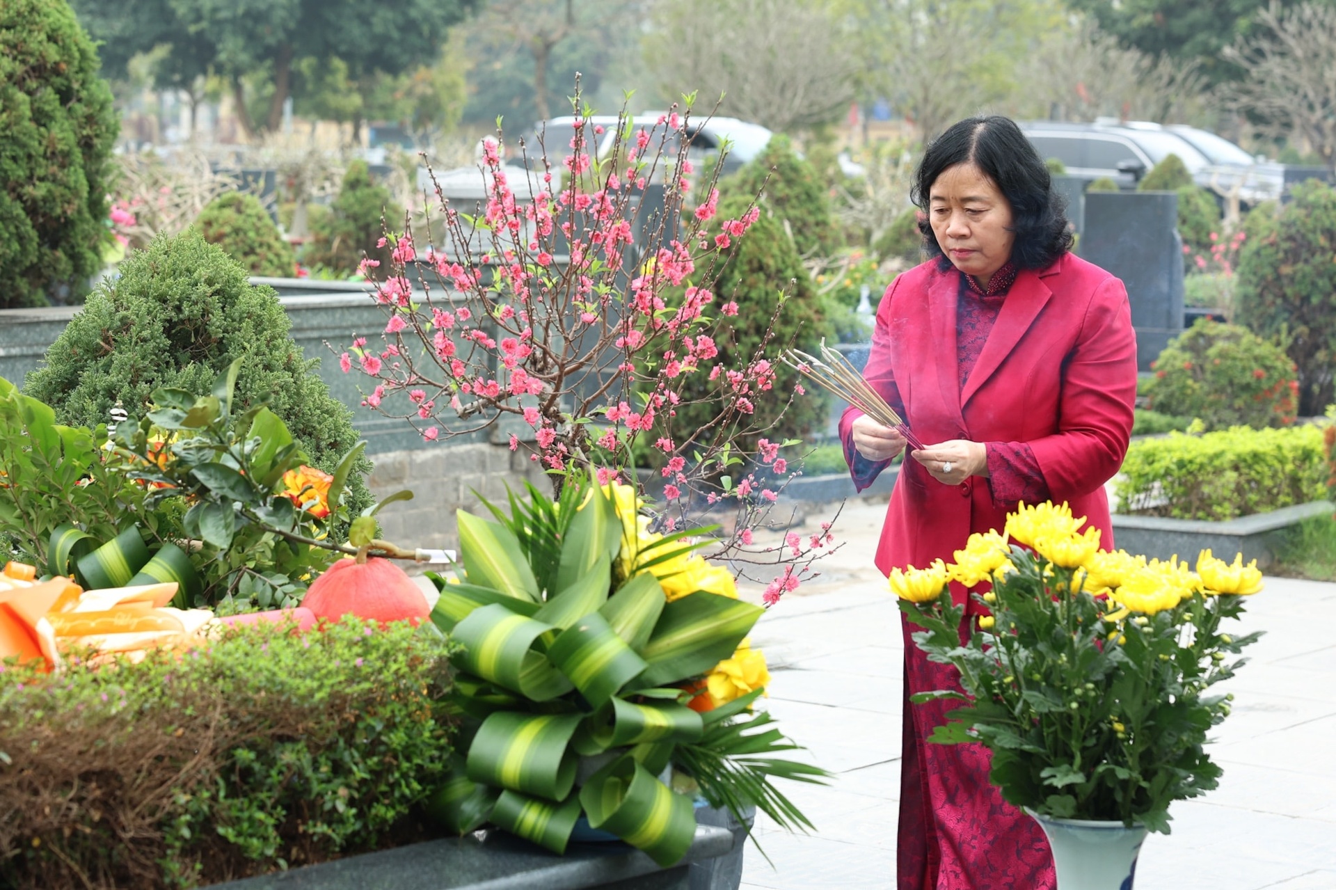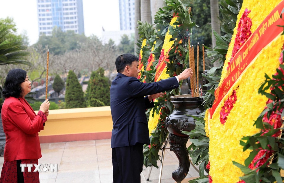 Trong sáng 13/2, các đồng chí lãnh đạo Đảng, Nhà nước, nguyên lãnh đạo Đảng, Nhà nước đã đến đặt vòng hoa, dâng hương kính viếng các vị tiền bối cách mạng và các Anh hùng Liệt sĩ tại Nghĩa trang Mai Dịch - Hà Nội.