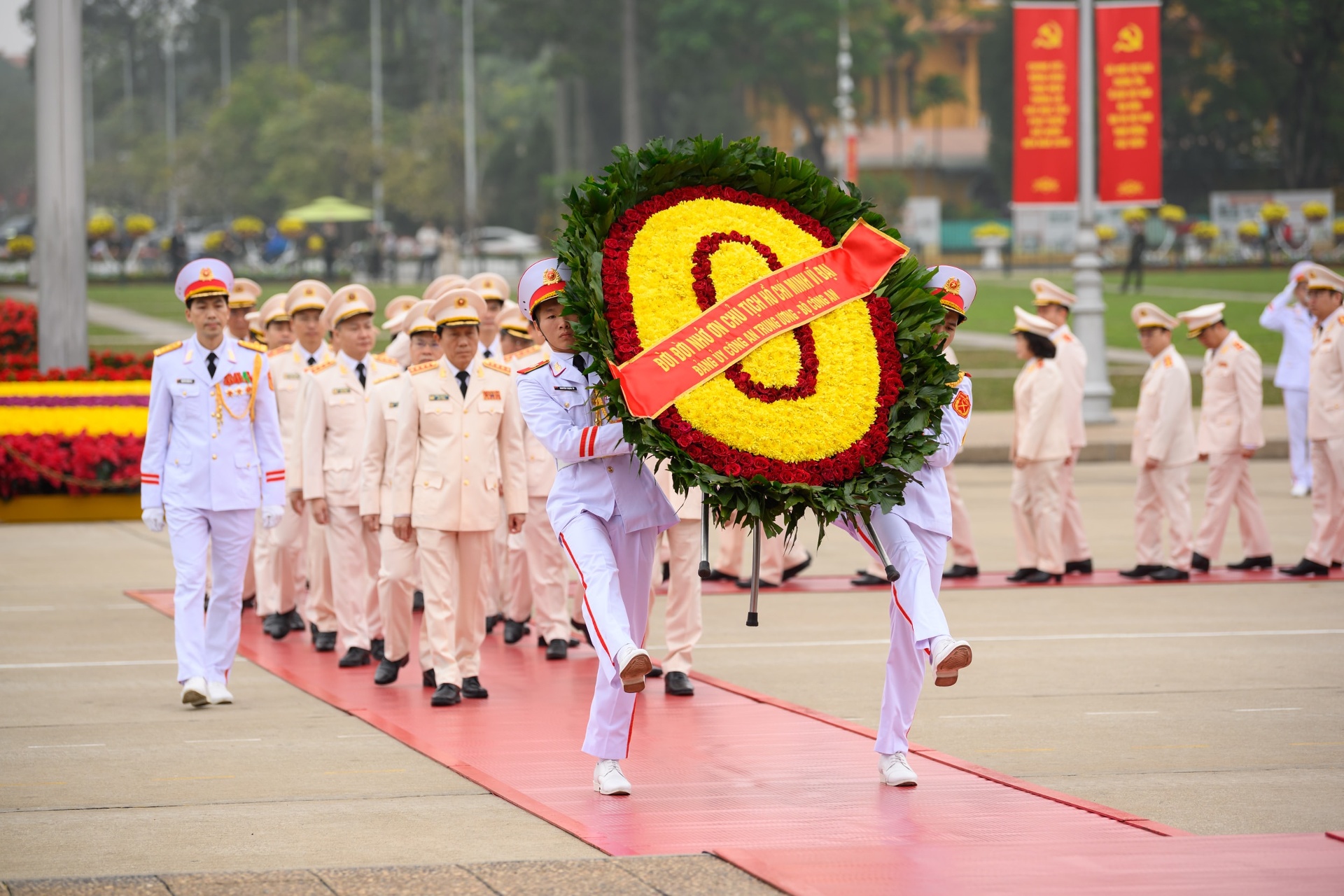 Đoàn đại biểu Đảng ủy Công an Trung ương, Bộ Công an vào Lăng viếng Chủ tịch Hồ Chí Minh. Ảnh: Phạm Thắng