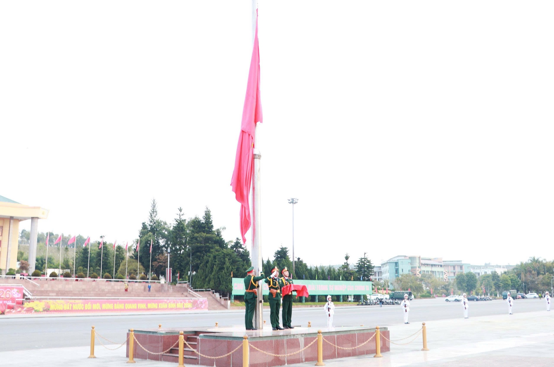 Sáng 1/1 tại Quảng trường Nhân dân tỉnh, UBND tỉnh long trọng tổ chức Lễ chào cờ chào năm mới năm 2026 với sự tham gia của hơn 2.200 cán bộ, chiến sĩ và nhân dân các dân tộc trong tỉnh.