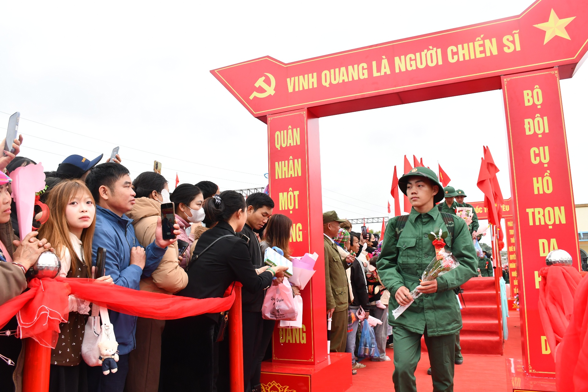 Trong không khí trang trọng, các tân binh phấn khởi bước qua “Cầu vinh quang”, chính thức lên đường nhập ngũ bảo vệ Tổ quốc.