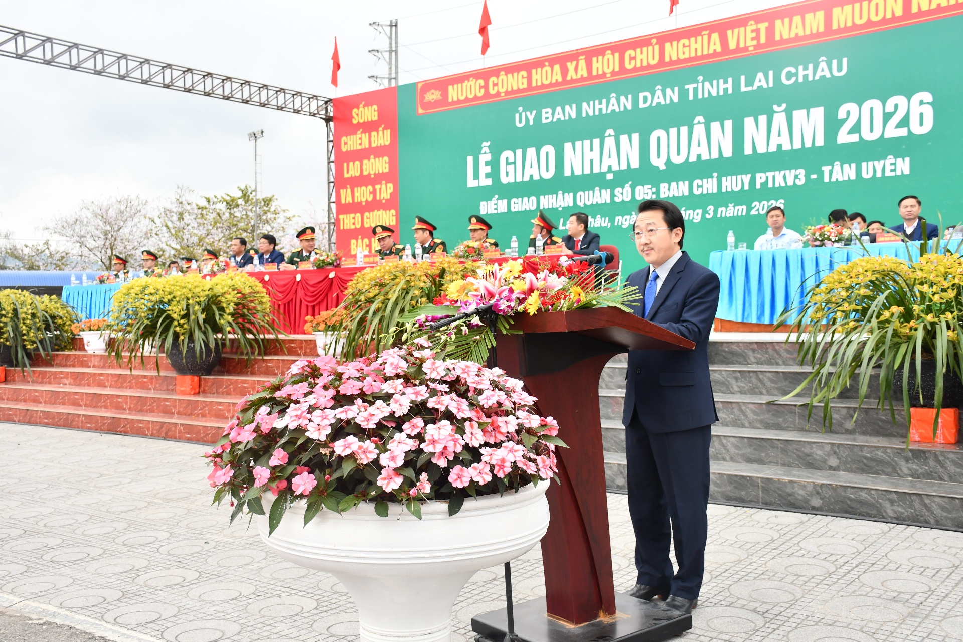 Năm 2026, tỉnh Lai Châu tổ chức giao, nhận quân tại 5 điểm là Bum Tở, Nậm Hàng, Phong Thổ, Sìn Hồ và Tân Uyên với 839 công dân lên đường nhập ngũ; trong đó thực hiện nghĩa vụ quân sự 600 công dân, còn lại tham gia nghĩa vụ Công an Nhân dân. Riêng điểm giao nhận quân số 5 Ban Chỉ huy Phòng thủ Khu vực 3 - Tân Uyên (gồm 13 xã Khoen On, Mường Khoa, Nậm Sỏ, Tả Lèng, Khun Há, Bản Bo, Bình Lư, Nậm Cuổi, Than Uyên, Mường Than, Pắc Ta, Tân Uyên, Mường Kim) có 356 thanh niên trúng tuyển, được phân bổ về 3 đơn vị: Tổng cục Công nghiệp Quốc phòng, Trung đoàn 880 - Bộ Chỉ huy Quân sự tỉnh và Công an tỉnh.