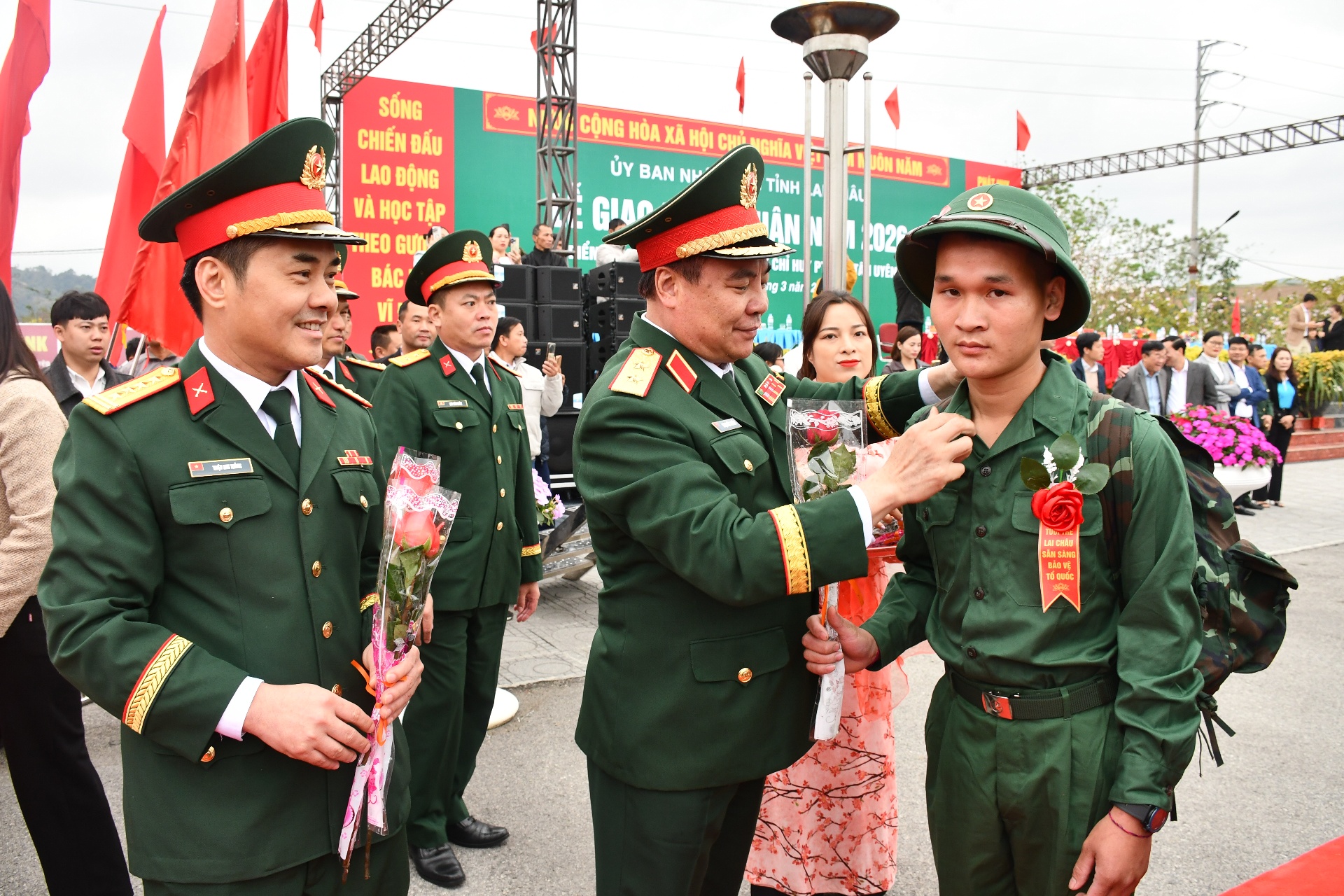 Lễ giao, nhận quân năm 2026 tại 5 điểm trên địa bàn tỉnh được tổ chức trang trọng, nhanh gọn, đúng quy định, bảo đảm an toàn, thắm đượm tình quân dân. Đồng chí Trung tướng Phạm Đức Duyên - Bí thư Đảng ủy, Chính ủy Quân khu 2; đồng chí Sùng A Hồ - Phó Bí thư Thường trực Tỉnh ủy, các đại biểu cùng lãnh đạo các xã đã tặng hoa động viên các thanh niên lên đường nhập ngũ.