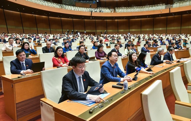 Các đại biểu bấm nút biểu quyết thông qua luật