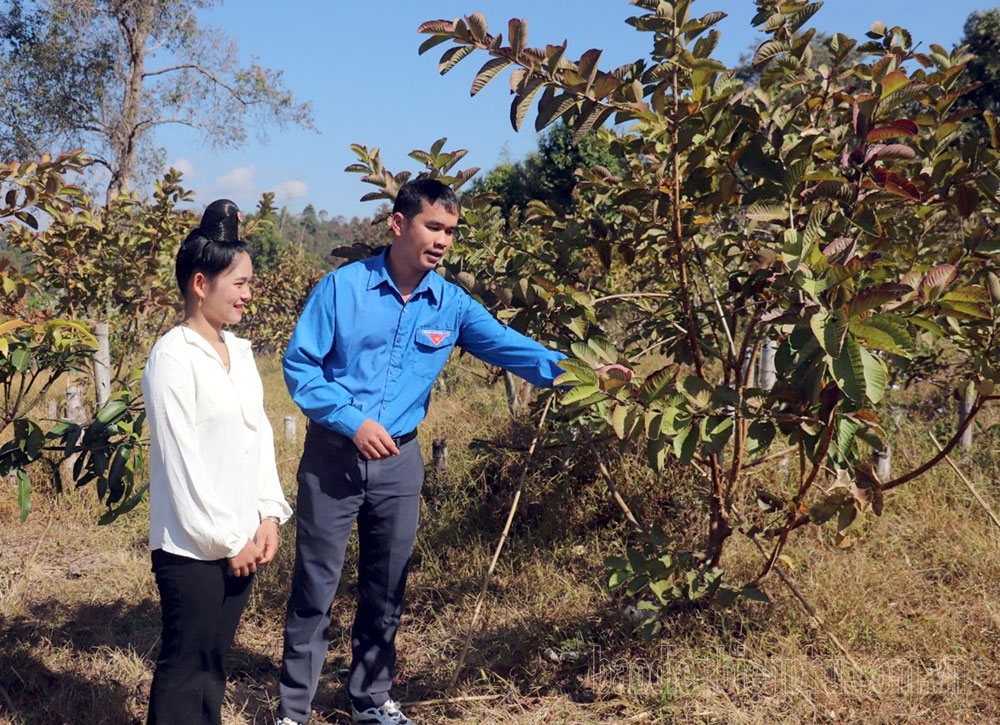 Cán bộ Đoàn xã Pá Khoang thăm mô hình phát triển kinh tế của gia đình đoàn viên trên địa bàn.