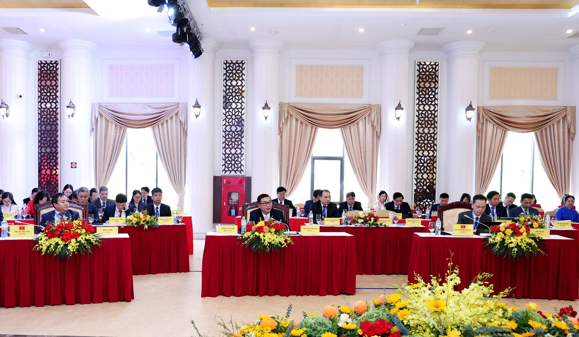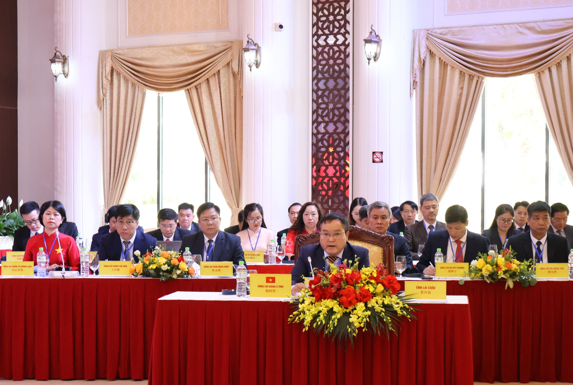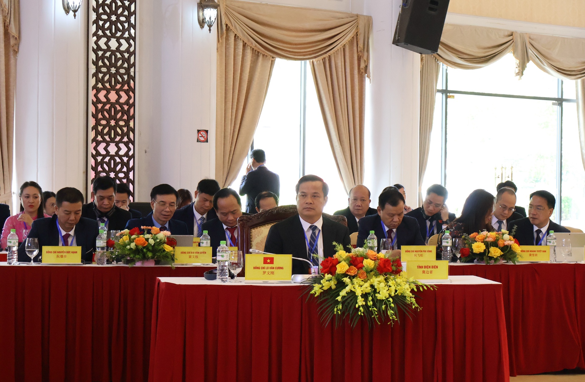 Các đồng chí: Giàng A Tính - Ủy viên Ban Thường vụ Tỉnh ủy, Phó Chủ tịch UBND tỉnh, Trưởng Nhóm Công tác liên hợp tỉnh Lai Châu; Nguyễn Thành Sinh - Phó Chủ tịch UBND tỉnh Lào Cai; Hoàng Gia Long - Ủy viên Ban Thường vụ Tỉnh ủy, Phó Chủ tịch UBND tỉnh Tuyên Quang; Lò Văn Cương - Ủy viên Ban Thường vụ Tỉnh ủy, Phó Chủ tịch UBND tỉnh Điện Biên và đồng chí Lưu Dũng - Phó Tỉnh trưởng Chính quyền nhân dân tỉnh Vân Nam dẫn đầu đoàn đại biểu các tỉnh và dự phiên họp.