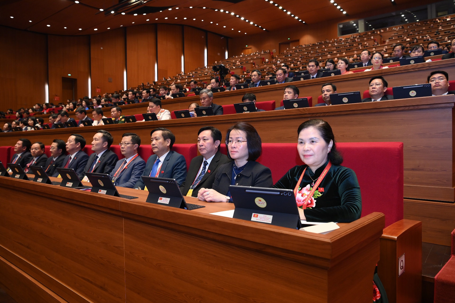 Đại hội biểu quyết tán thành, nhất trí cao thông qua báo cáo thẩm tra tư cách đại biểu Đại hội XIV của Đảng do Ban Thẩm tra tư cách đại biểu trình. Theo đó, tất cả 1.586 đại biểu được triệu tập dự Đại hội đều đủ tư cách đại biểu Đại hội.