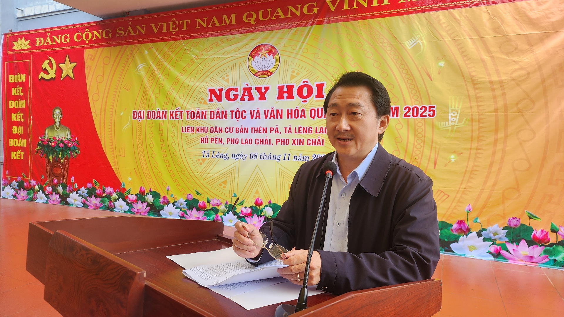 Sáng 8/11, liên khu dân cư bản Thèn Pả, Tả Lèng Lao Chải, Hồ Pên, Pho Lao Chải, Pho Xin Chải (xã Tả Lèng) tổ chức Ngày hội đại đoàn kết toàn dân tộc và văn hóa quân dân năm 2025. Đồng chí Sùng A Hồ - Phó Bí thư Thường trực Tỉnh ủy, Chủ tịch Ủy ban MTTQ Việt Nam tỉnh dự ngày hội.