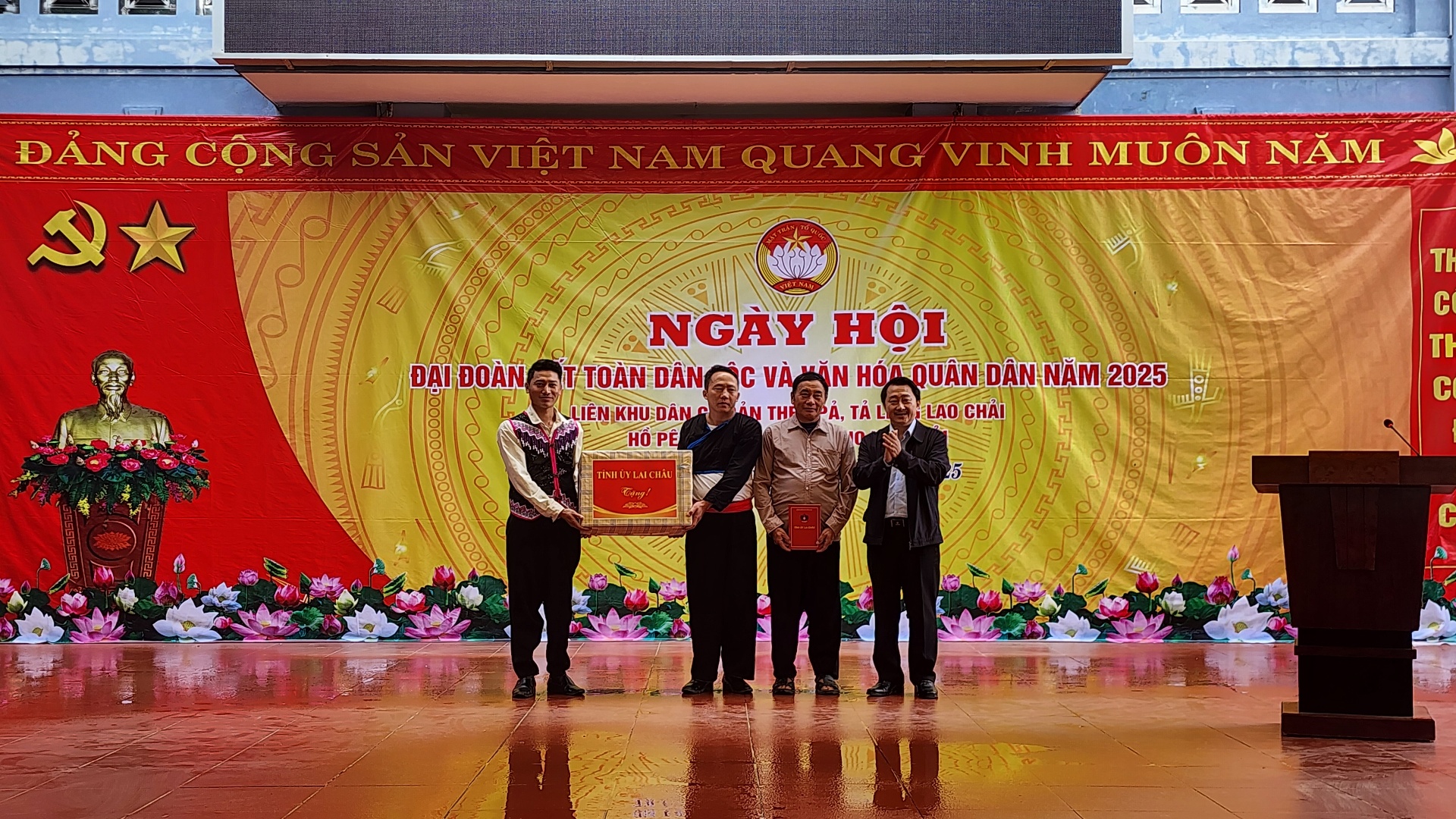 Nhân dịp này, thay mặt đoàn công tác của tỉnh, đồng chí Phó Bí thư Thường trực Tỉnh ủy đã tặng quà chúc mừng nhân dân liên khu các bản: Thèn Pả, Hồ Pên, Tả Lèng, Pho Xin Chải, Pho Lao Chải; UBND xã Tả Lèng Tặng giấy khen cho 43 hộ gia đình có thành tích xuất sắc trong thực hiện phong trào “Toàn dân đoàn kết xây dựng đời sống văn hóa” năm 2025 . Bộ CHQS tỉnh đã tặng những phần quà chúc mừng nhân dân các bản.