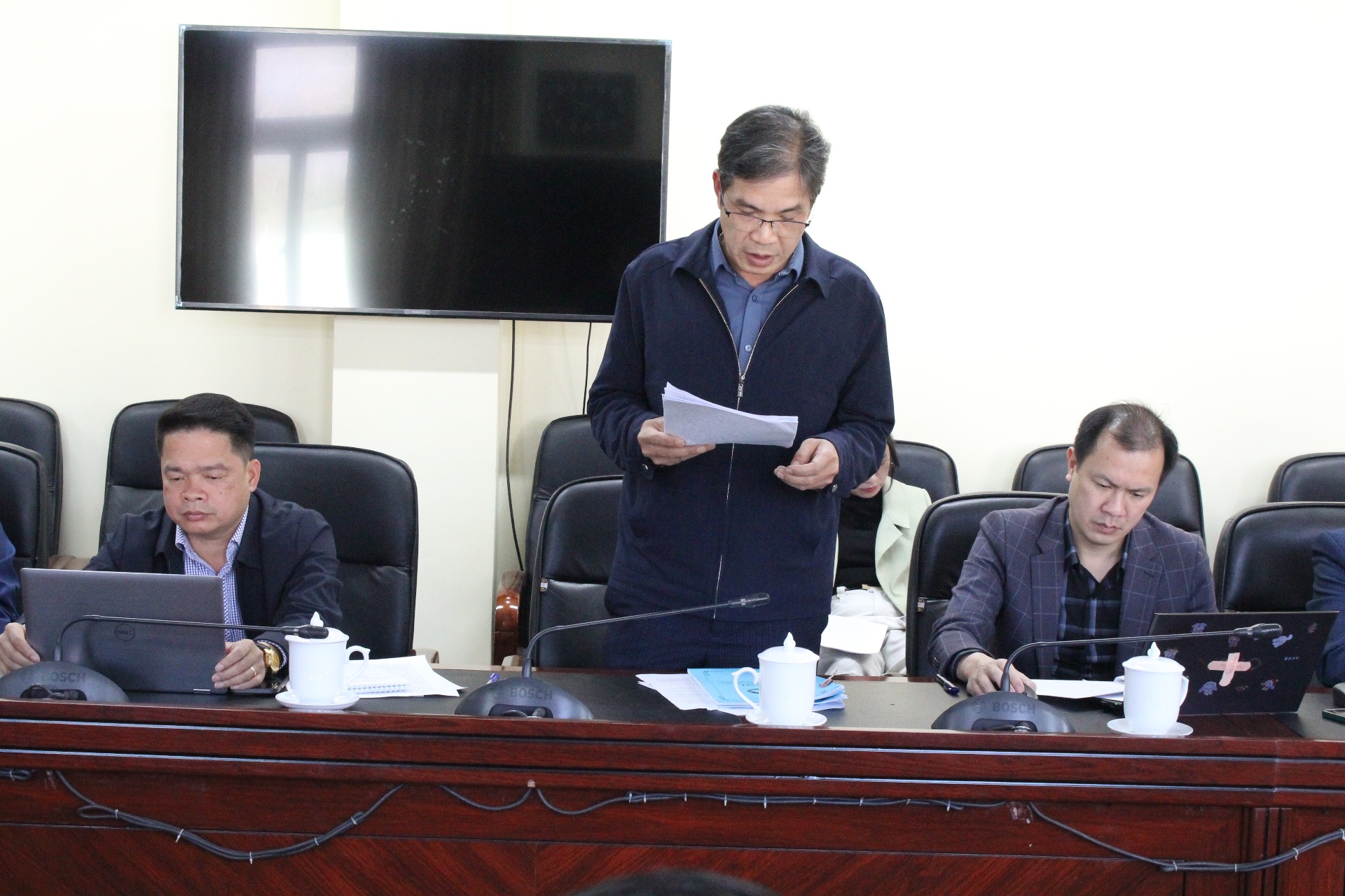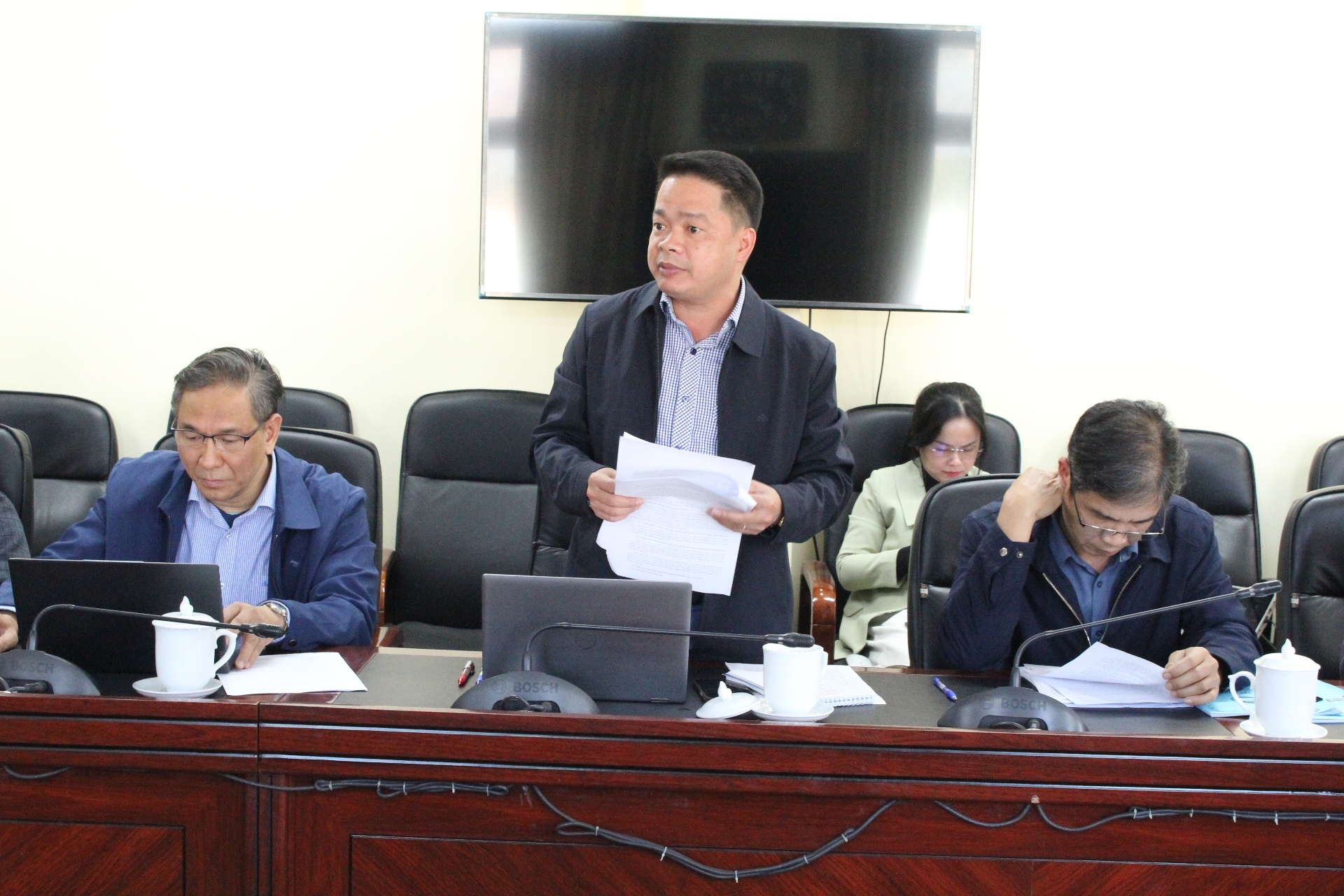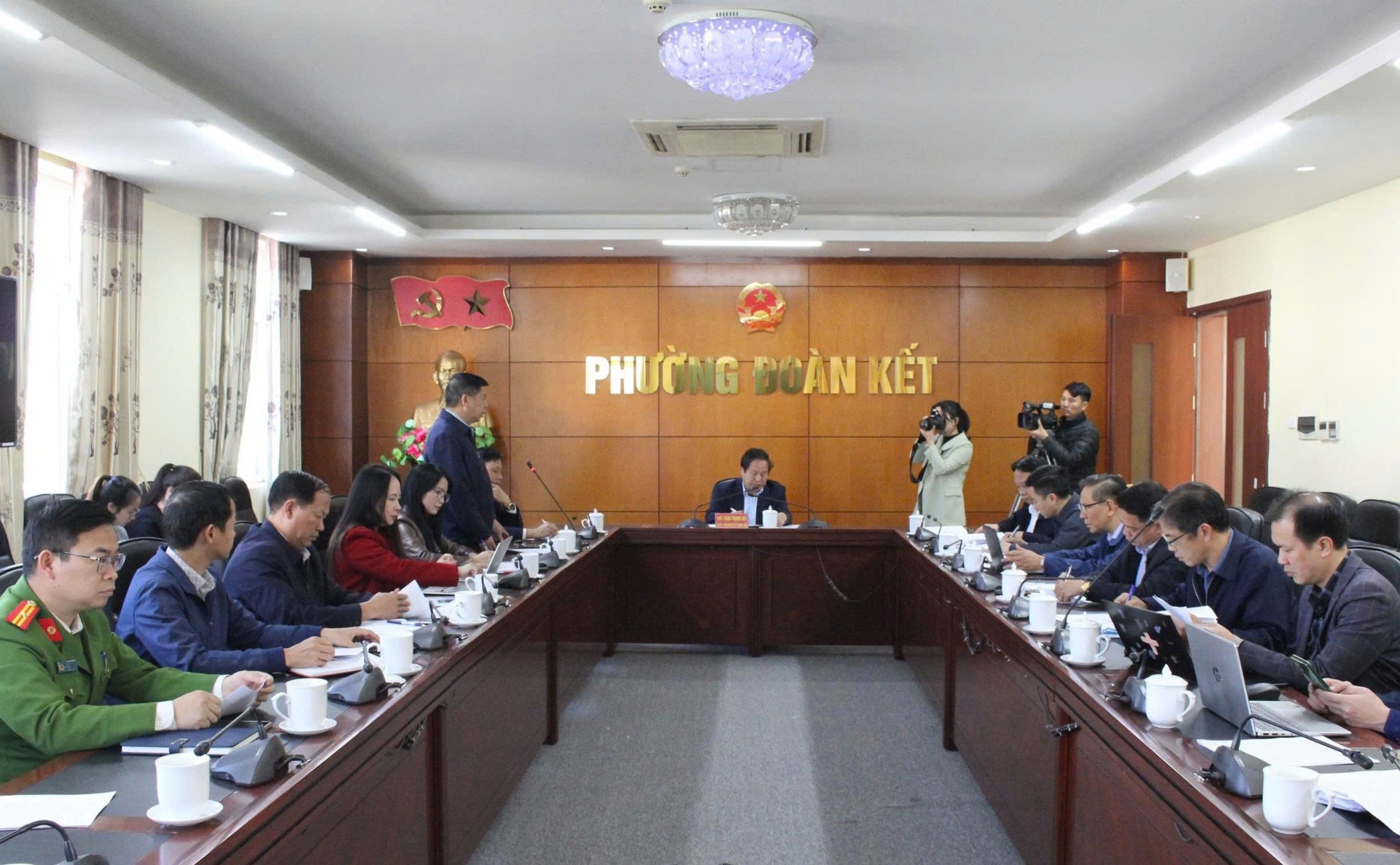 Lãnh đạo phường Đoàn Kết báo cáo công tác chuẩn bị bầu cử.