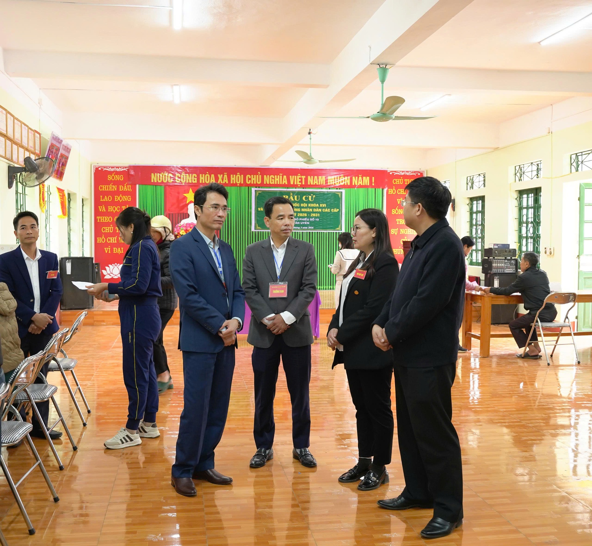 Đồng chí Hà Trọng Hải - Phó Chủ tịch UBND tỉnh kiểm tra công tác bầu cử tại các khu vực bỏ phiếu.