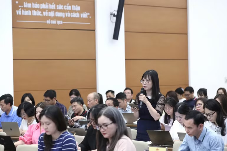 Phóng viên đặt câu hỏi tại họp báo. (Ảnh: DUY LINH)