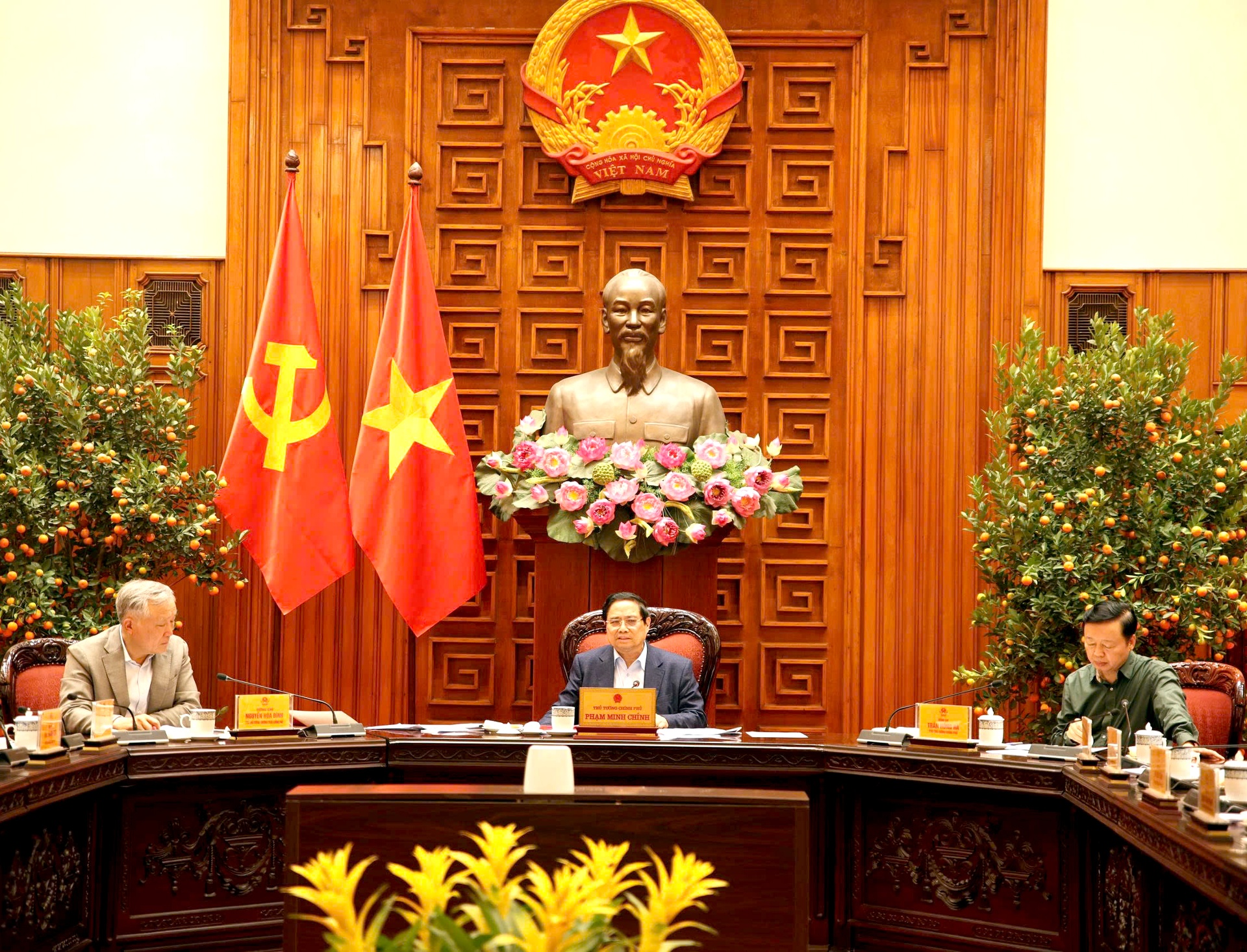 Thủ tướng Chính phủ cùng các Phó Thủ tướng chủ trì buổi làm việc.