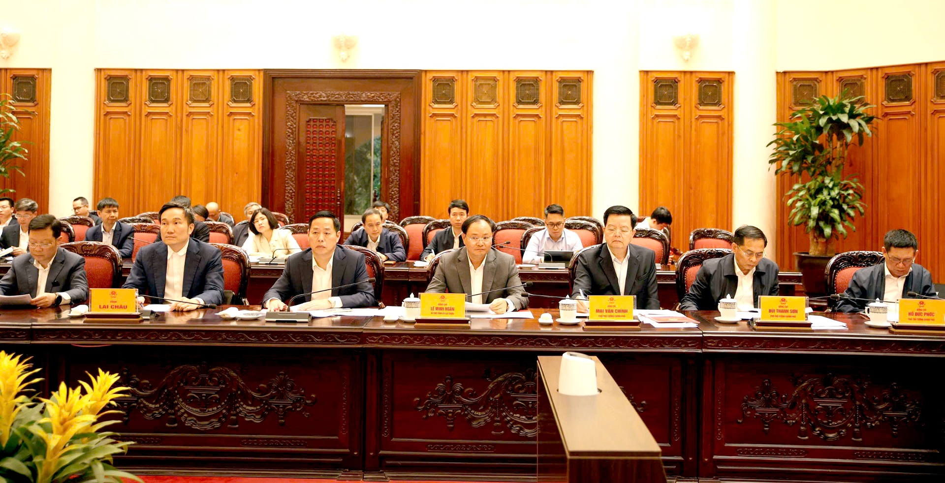 Tiếp thu ý kiến chỉ đạo của Thủ tướng Chính phủ Phạm Minh Chính, thay mặt Thường trực Tỉnh uỷ, đồng chí Lê Minh Ngân - Bí thư Tỉnh uỷ trân trọng cảm ơn sự quan tâm của Thủ tướng Chính phủ, các đồng chí Phó Thủ tướng và lãnh đạo các bộ, ngành Trung ương. Tỉnh Lai Châu sẽ phát huy sức mạnh nội lực, tiềm năng thế mạnh của địa phương để từng bước đưa Lai Châu phát triển xanh, nhanh và bền vững. Đồng thời, phối hợp với Bộ Quốc phòng làm tốt công tác giải phóng mặt bằng để xây dựng đường tuần tra biên giới.