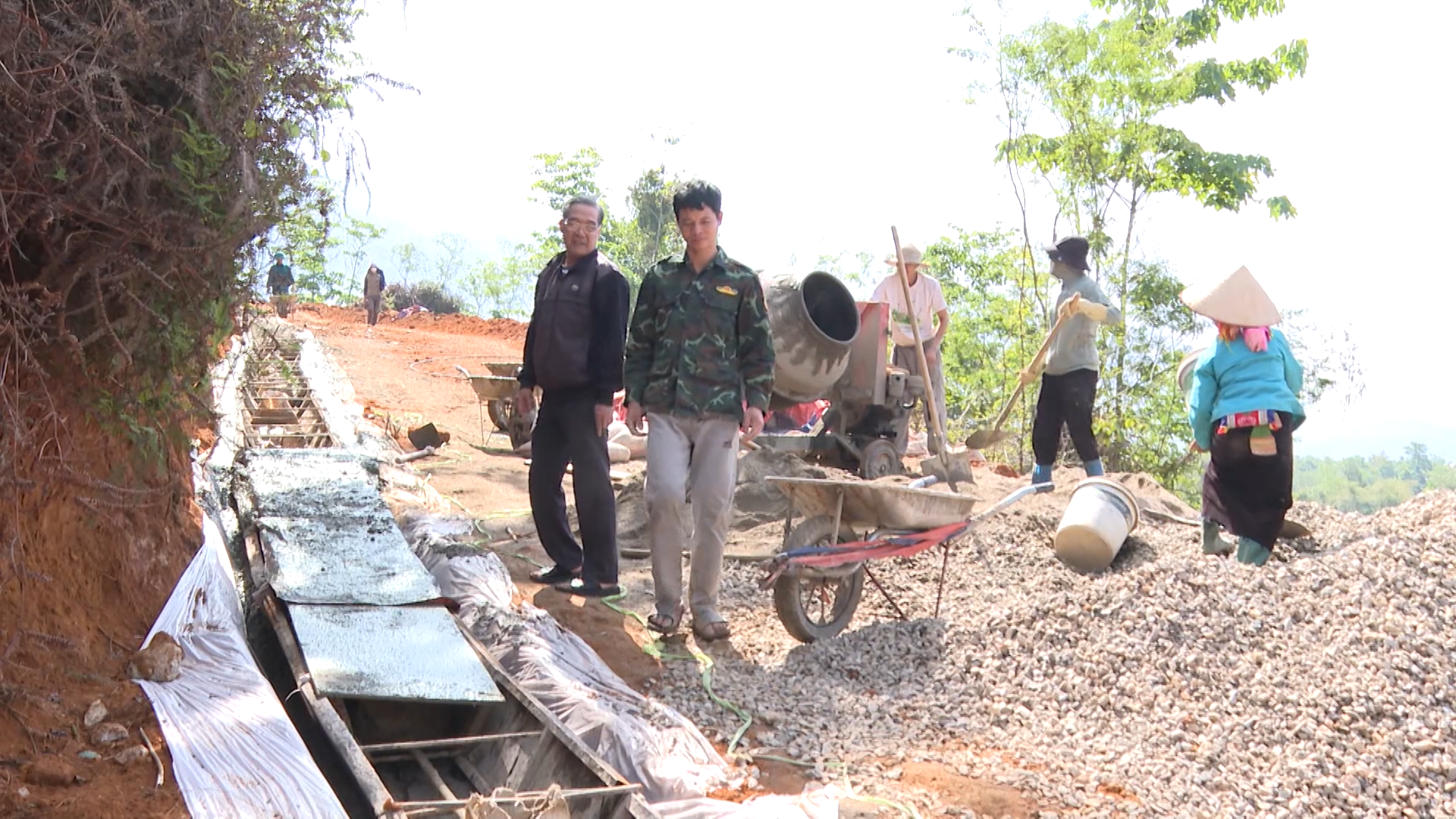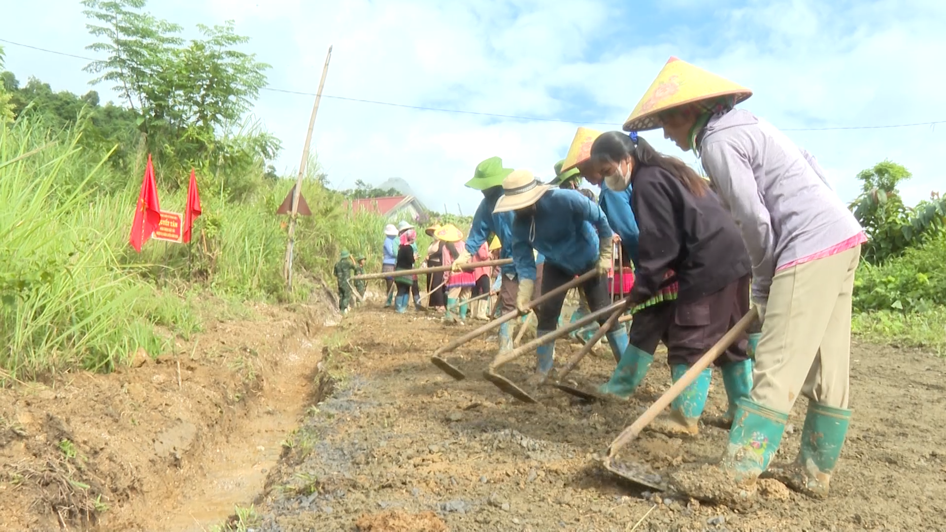 Cán bộ Mặt trận Tổ quốc và các tổ chức chính trị - xã hội phường Tân Phong giúp nhân dân sửa chữa đường giao thông liên tổ dân phố Xì Miền Khan - Phan Chu Hoa.