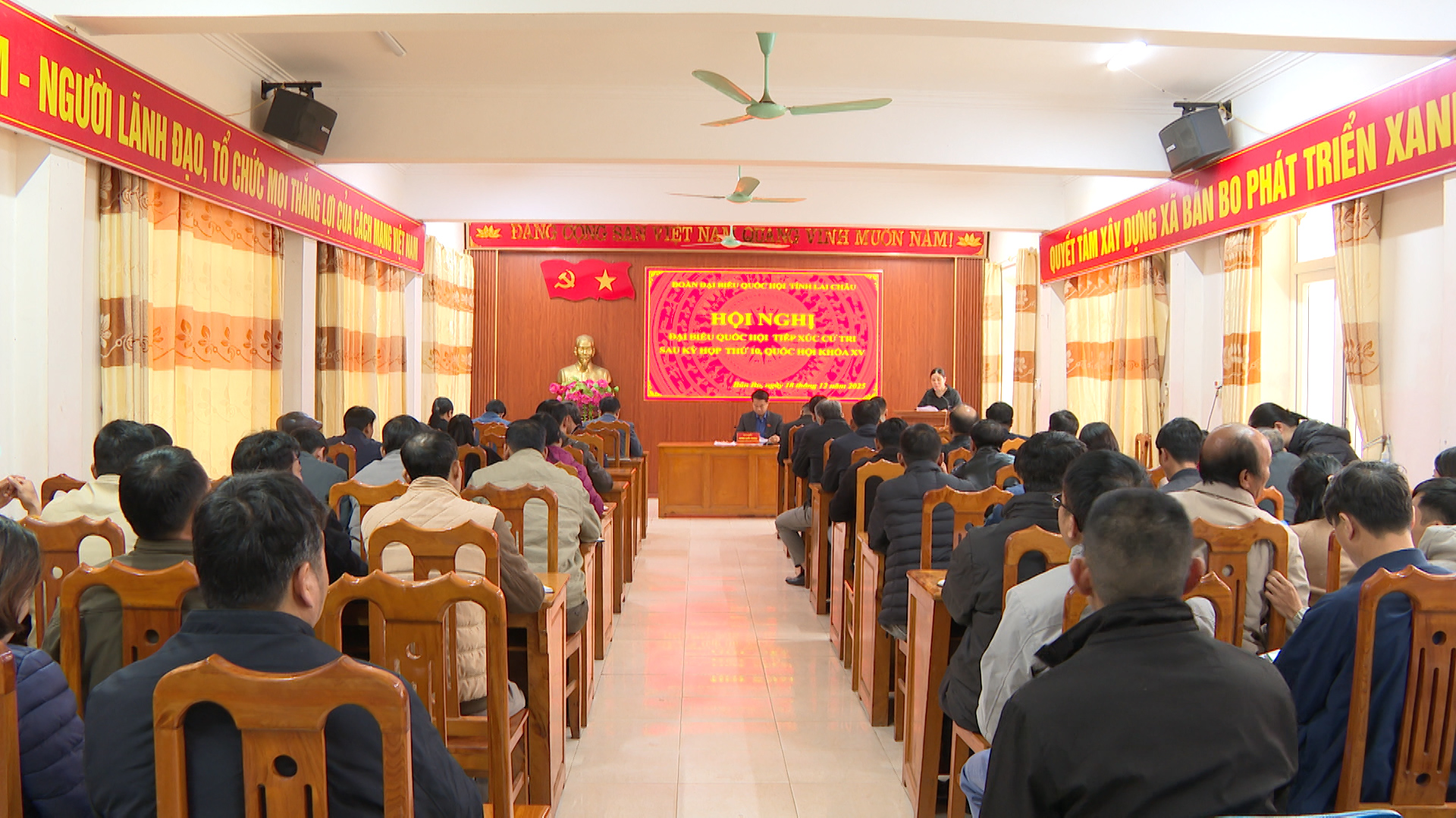 Tại buổi tiếp xúc, đồng chí Hoàng Quốc Khánh - Phó trưởng đoàn chuyên trách Đoàn Đại biểu Quốc hội tỉnh đã thay mặt Đoàn Đại biểu Quốc hội tỉnh thông báo tới cử tri kết quả Kỳ họp thứ 10, Quốc hội khóa XV, đồng thời, báo cáo những hoạt động nổi bật của Đoàn Đại biểu Quốc hội tỉnh Lai Châu tại kỳ họp.